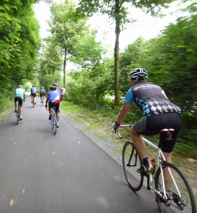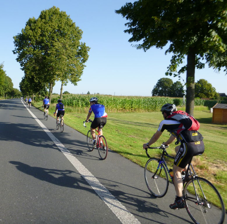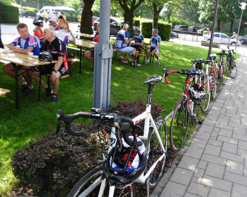 Heute waren wir zu siebt am Treffpunkt. Wie fast immer; wenn wir unterwegs sind: „Kaiserwetter“. Die Temperaturen waren lau, warmfahren schenkten wir uns, es ging direkt ordentlich los. In Uedem hatten wir einen gesunden 30er Schnitt auf der Uhr. Die Gruppe war sehr homogen und blieb zusammen. Anmelden, Kaffee und Kuchen, auch die Trinkflasche auffüllen, das Standardritual war schnell erledigt. Auf der Rückfahrt teilte sich die Gruppe in zwei Teile, eine fuhr wieder, der Gewohnheit folgend, einen knappen 30-er Schnitt heimwärts, die anderen brachten mehr Druck aufs Pedal und brannten einen Schnitt jenseits der 30 auf den Asphalt ;-)