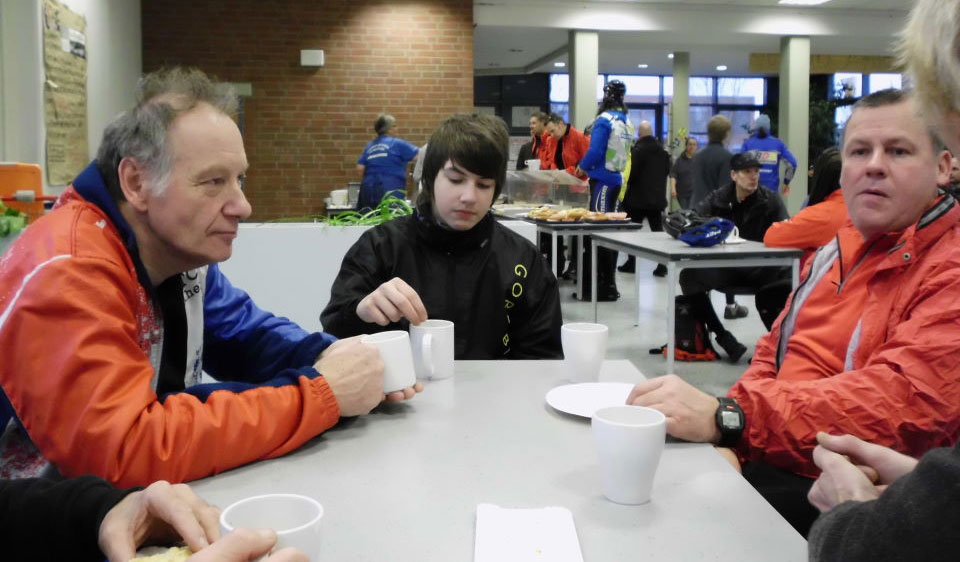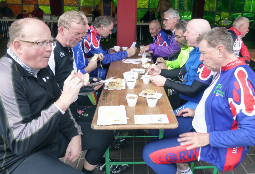 Im Ziel waren wir dann nass und leicht ausgekühlt, aber Kaffee und Kuchen zu ungeschlagenen Preisen mundeten vorzüglich und wärmten Kopf und Körper. Sogar Rainer und Otti waren noch vor Ort.