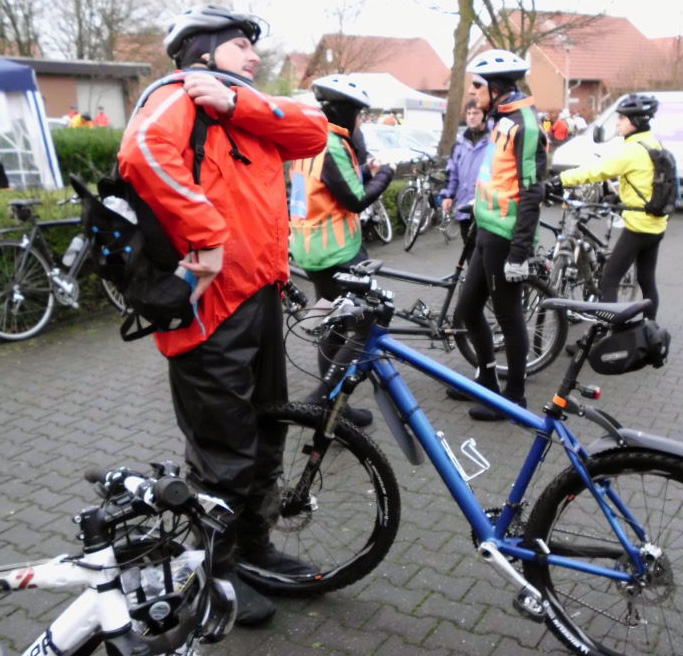 Wir entscheiden uns trotz der Kälte für die 46 km Strecke und sind mit einer Fahrzeit von 3 Stunden ganz gut in der Zeit. Vor Ort ist die Laune gut, die anderen Mülheimer sind wahrscheinlich schon wieder auf der Heimreise, nur die Kettwiger genießen mit uns Kaffee und Kuchen aus der Feuerwehrkantine. Der Tag ist schon halbwegs lang mit so einer Aktion – Morgens ab 8:30 Uhr bis 15:30 Uhr, die ausführliche warme Dusche müsste man noch hinzuaddieren, na ja, aber ganz nett war es trotzdem.