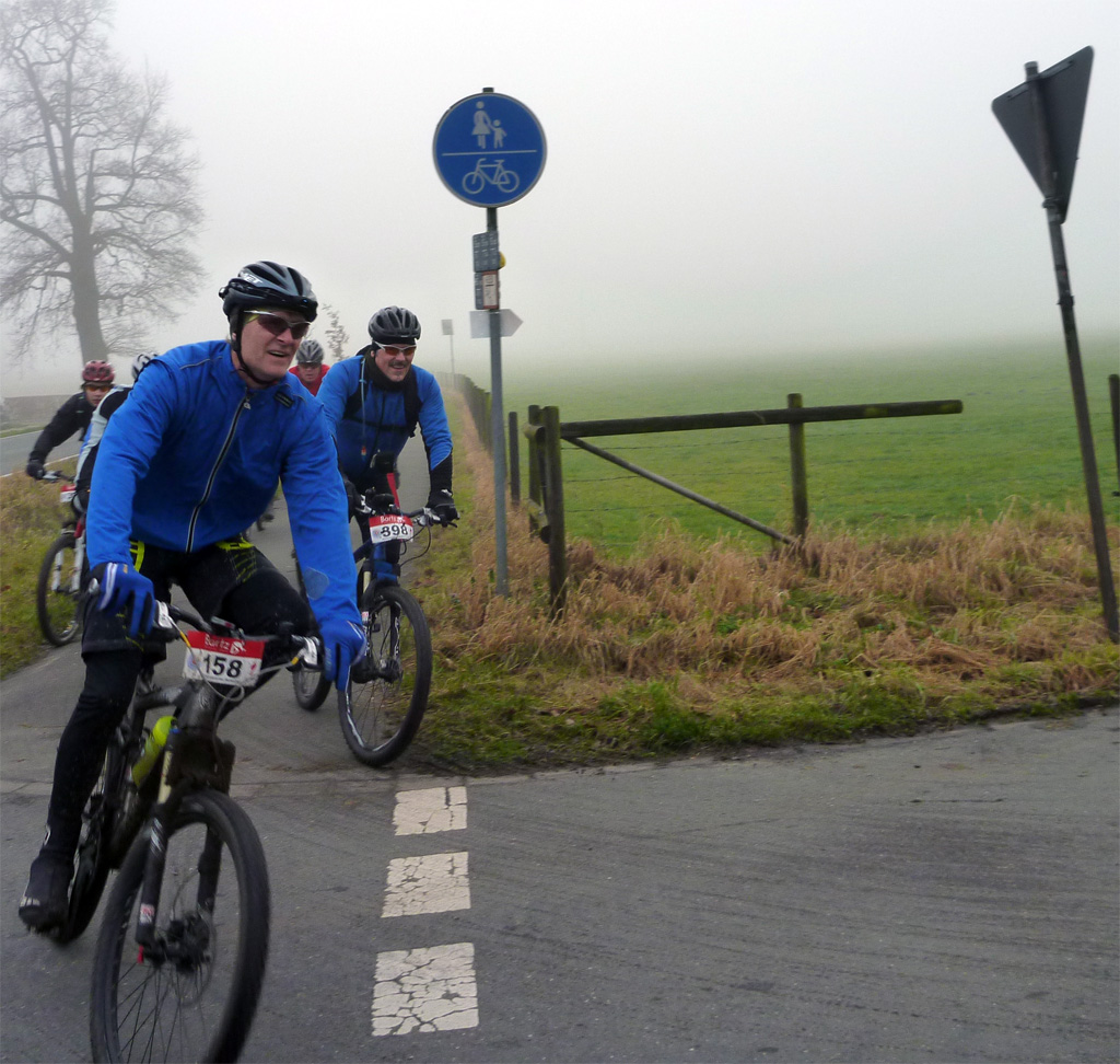 Nach dem verregneten Samstag blieb der Sonntag trocken. Die Haard-Biker hatten trotz Regen die Ausschilderung hervorragend geregelt und ehrlich, die Streckenführung ist ein kleines Kunstwerk - alle Strecken führen auf eine zentrale Kontrolle zusammen -auf der Langstrecke läuft man 3-mal ein - trotzdem wird die Strecke nie langweilig, trotz einiger Déja Vues. Und es ist dabei geblieben: es gibt praktisch keinen Meter Asphalt.