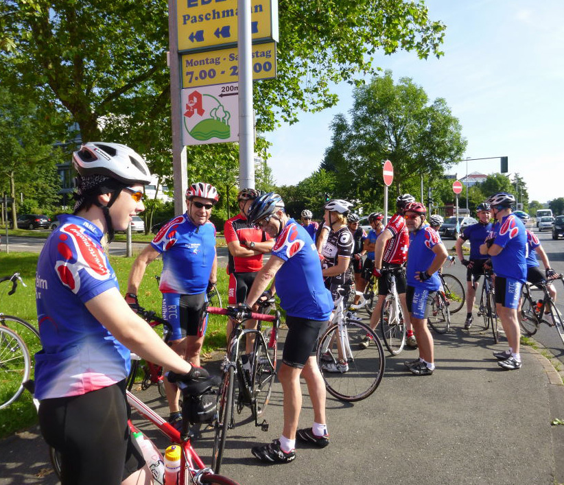 133 Starter, prima Organisation, engagierte Mitglieder, aber viel Regen und Wind und daher viel zu wenige Starter auf der 33. Ruhrtal-RTF. Zum 3. Mal stand die RTF unter einem schlechten Stern, einmal wegen drohendem Frost abgesagt (2010), dann weniger als 100 Teilnehmer (2011) und auch in diesem Jahr gerade einmal 133 Teilnehmer. Aber es hatte auch gute Momente..........lesen Sie weiter Stadtrundfahrt Während einige Kollegen dem MünsterlandGiro einen Besuch abstatteten, rollten gerade mal 4 RTC-ler nach Pfeil Erle. Der morgendliche Blick aus dem Fenster schien Regen zu versprechen, aber es blieb trocken, vor Ort waren noch ein paar mehr Kollegen versammelt. Pfeil Erle litt ein wenig unter den unklaren Wetterverhältnissen und wir hatten auch heimwärts eine entspannte Fahrt im kleinen Kreis. Immer gern dabei: