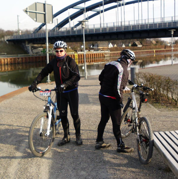 Morgens gabs ein paar Tropfen, während der Veranstaltung blieb es weitgehend grau, aber trocken. Organisatorisch war es gewohnt souverän. Mülheims übliche Verdächtige waren wieder am Start, verstärkt durch das Damen-Duo Daniela und Brigitte. Kreuz und quer lernte man teils historische Kanalanlagen und -bauten kennen. Die Strecke gab's mit Zuschlag, da eine Brückensperrung einen Umweg erforderte und nach 3 h Fahrzeit, nur wenigen Höhenmetern und rund 60 km war die vorletzte Winterbike-Veranstaltung absolviert.