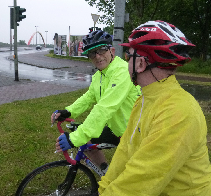 Am regnerischen Samstag geht keiner aufs Rad !? Falsch gedacht, denn am Treffpunkt gesellte sich Otti, als unerschrockener Regenritter dazu. Mehr wurden es dann doch nicht, also ging es zu zweit ab nach Neersen. Immerhin war das Wetter locker zehn mal besser als vorher angesagt. Der Regen begleitete uns nur phasenweise und dann auch nur unwillig. Vor Ort beim TB Neersen war nicht viel los, doch Kaffee und Kuchen waren hervorragend.
