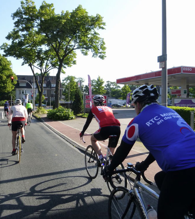 Mani (der RTC-Vorsitzende) sah das dann so: Ich fand es einfach toll, dass Klaus Taute sich mal für eine neue Strecke in Richtung Gevelsberg eingesetzt hat. Obwohl ich auf anderen Pfaden zum Zielort gefahren bin, habe ich doch von Thomas u. a. mitbekommen, dass ein Wechsel der eingefahrenen Tourenwege zu den Orten Silschede, Schwelm, Sprockhövel, Gevelsberg für die meisten reizvoll war.