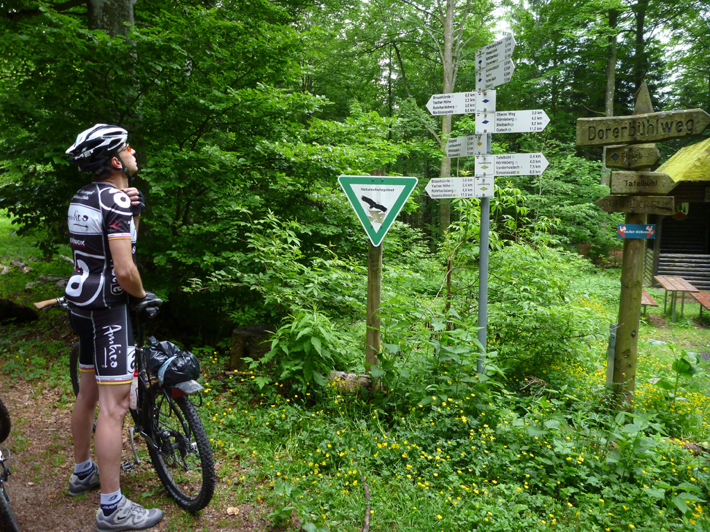 Nicht jede Etappe hatte die 10. Wiederholung auf dem Buckel, aber zumindest zwei der Etappen können auf eine längere Geschichte zurückblicken und zwei weitere hatten mit Kandel und Brend Bergspitzen im Programm, die schon häufiger erstiegen wurden. Die Wege dorthin waren aber sogar für den planenden Pfadfinder bisweilen überraschend. 5 Bikertage fanden in exklusiver Harmonie statt und das Wetter spielte weitgehend mit: Lediglich der Start in die Flachetappe verlangte auf den ersten 10 Kilometern nach einer Regenjacke, die dann aber abgelegt werden konnte und nicht wieder gebraucht wurde. Am Ende standen zahlreiche Höhenmeter, die ohne Panne, aber mit einigen Wandereinlagen erkämpft wurden. |