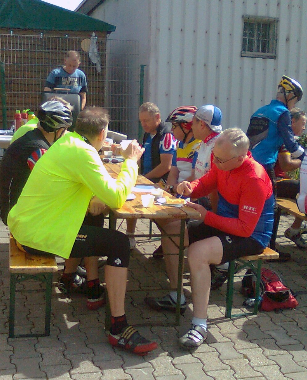 Der Clou des Tages war die telefonische Anfrage eines Dinslakener Kollegen, der 8 Stunden nach Start der Etappenfahrt wegen möglicher Teilnahme nachfragte. Leider mussten wir den Interessenten abschlägig bescheiden.