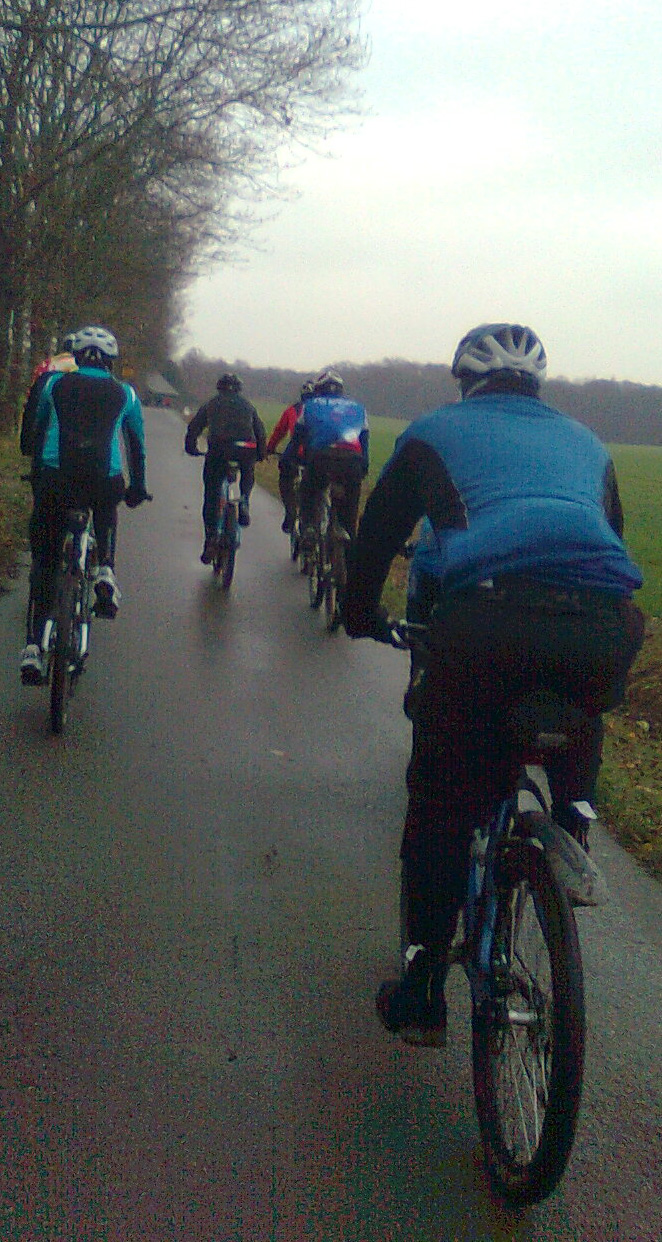 Der zünftige Gegenwind und reichlich kühle Luft prägten die letzte RTF-Runde. Während viele Mitglieder die Füße am Ofen wärmten, verzeichneten wir mit Christoph und Marc-Oliver eher seltene Gäste. Nach ausführlicher Pause liessen wir uns vom Rückenwind wieder Richtung Heimat treiben. In Kaiserswerth liess ein kleiner Absacker die letzte RTF-Runde ausklingen: Trocken, unfallfrei und gutgelaunt.