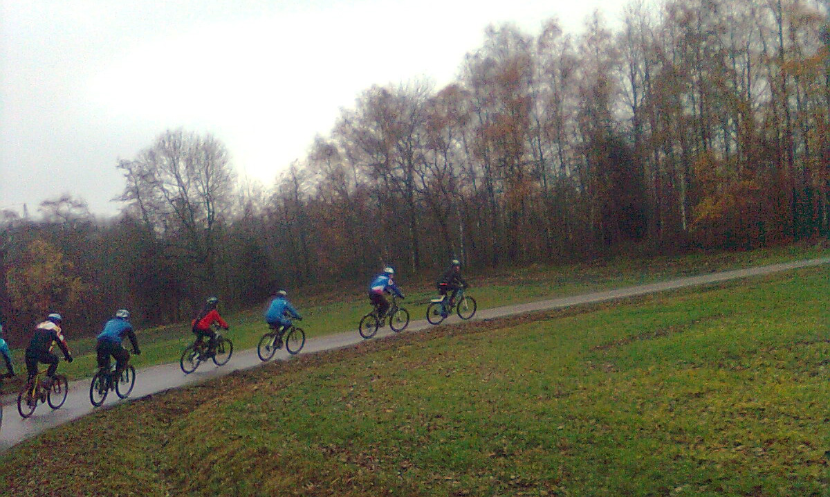 17. Novmeber 2012: Bunt gemischt und zahlreich ging es am Treff zur MTB-Runde zu. 8 Teilnehmer - sogar 2 Damen und ein Gastfahrer waren dabei - zogen über den Witthausbusch Richtung Essen und machten einen grossen Bogen mit Stadtwald, kurze Stipvisite bei Herrn Beitz und Auslauf über die Ruhrhöhen nach Kettwig hinunter. In Kettwig war aus dem Sonnenbad dann doch wieder eine Waschküche geworden. Beim Kaffee im Casino war die Truppe dann schon deutlich reduziert, was dem Kuchengenuss aber keinen Abbruch tat. Schöne -mal etwas anstrengendere-Runde, schönes Wetter und nette Truppe -vielleicht doch gute Werbung für einen schönen Sport.