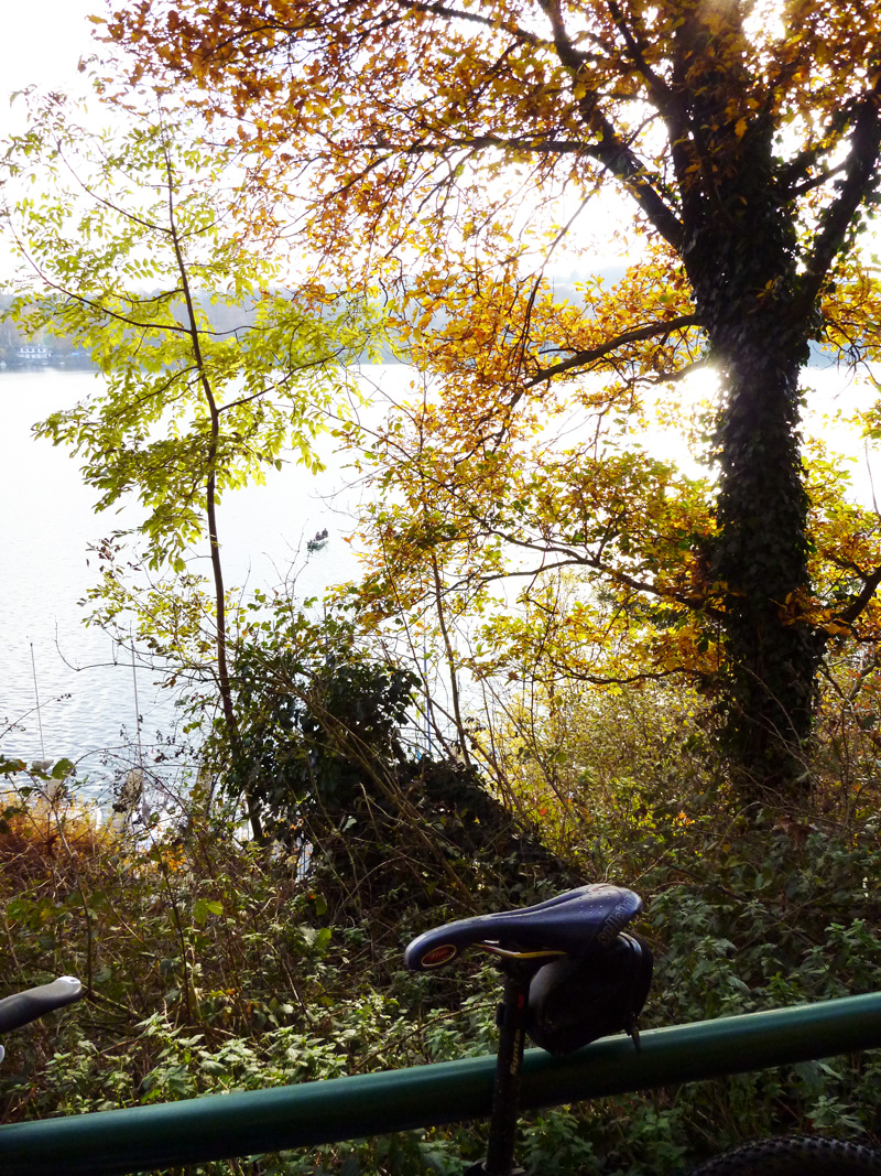 Das verlängerte Morgengrauen wegen der Zeitumstellung kam ganz gut nach der Fuchsjagd, um die erste Winterrunde auf der Straße zu absolvieren. Allerdings war der Zuspruch mäßig, 2 fürs Straßenrad und 2 für die Offroad-Runde kamen zusammen. Zur winterliche Kälte gesellte sich zuerst sonniges Wetter, am Ende des Baldeney-Sees lag dann fast Schnee in der Luft und die aufsteigenden Nebelschwaden am See zauberten feuchtkalte Melancholie in den Kopf. Am Reitercasino hatte die Sonne wieder gewonnen und der Kaffee mit Pflaumen- und Kirschstreusel hellte den Kopf wieder auf. 4 Radler saßen wieder beisammen und genossen die herbstliche Aussicht. Letzte Runde im NRW-CTF-Cup und erste CTF der Saison 2013