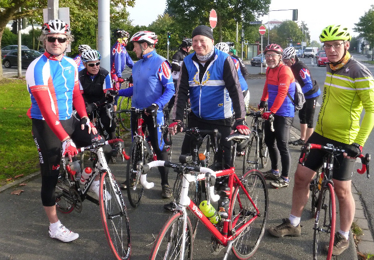 Vom Treff startete die „wilde 6“ auf die letzte RTF des Jahres nach Haltern. Ein paar Kollegen steuerten zwar den Treffpunkt an, aber lieferten lediglich die Wertungskarte ab. Der Herbst ist endgültig wetterbestimmend – kalt, nass, ungemütlich aber eigentlich doch Radfahrwetter – man muss sich wieder dran gewöhnen.