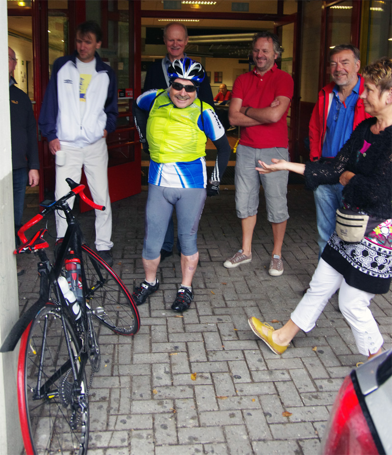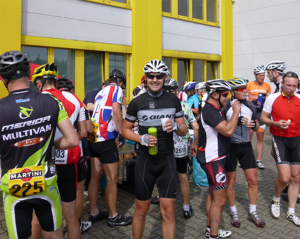 Wir vier fuhren total "cool" mit dem Rennrad nach Essen Vogelheim. Kurz vor Start und Ziel trafen wir Heinz. Er hatte schon die ersten Meter der 45er Runde hinter sich, fuhr aber noch mal mit uns zur Anmeldung, so dass wir gemeinsam auf die Runde gehen konnten.