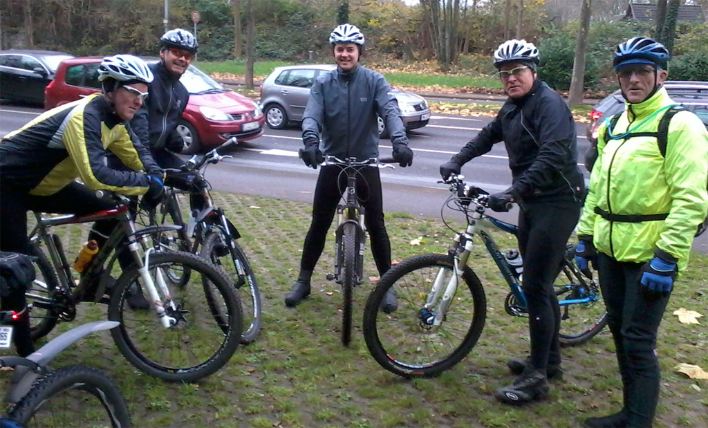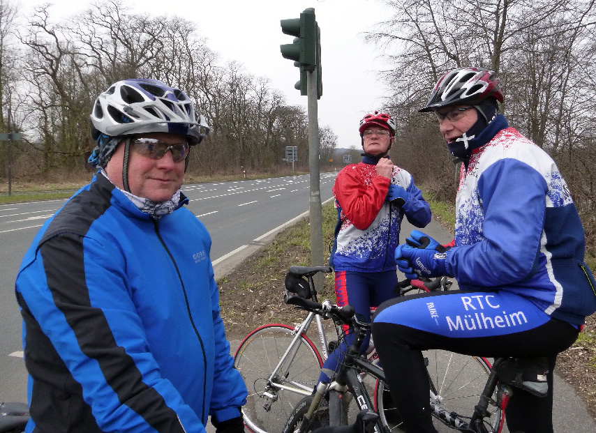 Am Samstag waren es schon fünf ! 4 Strassenfahrer und Otti trafen sich am Raffelberg. Otti war per MTB da, da er nach Ratingen wollte, durch den Wald, um dem eiskalten Wind zu entkommen.