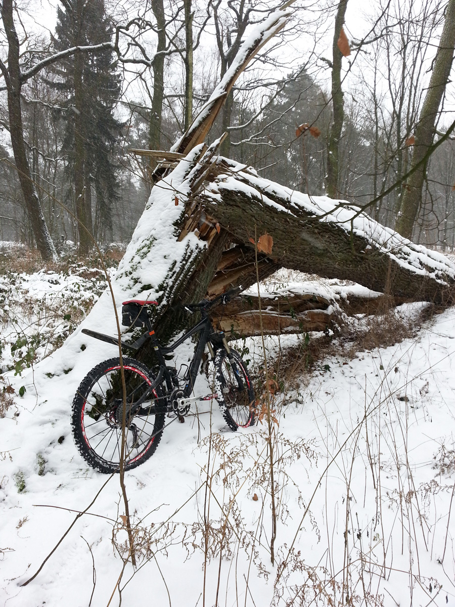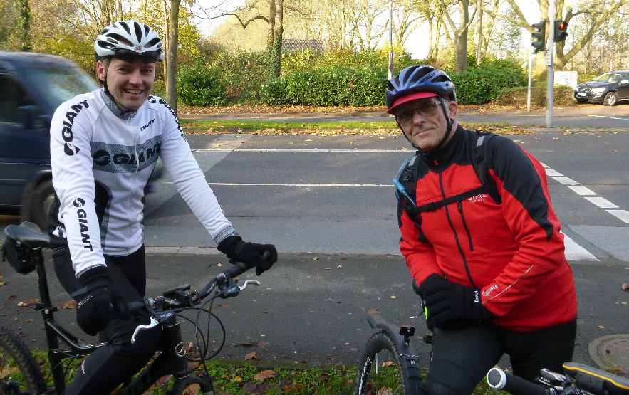 Zum Aufwärmen noch ein bisschen pumpen und los ging's. Die Runde, die sich an der vom Samstag orientierte, war super und durch den neu gefallenen Schnee noch ein bisschen anders als gestern. Das Reitercasino, in dem wir gerne unsere Mülheimer Runden beenden, war wegen einer Reitveranstaltung bis zum Bersten überfüllt. So gab es den Kaffee und Kuchen eben zu Hause.