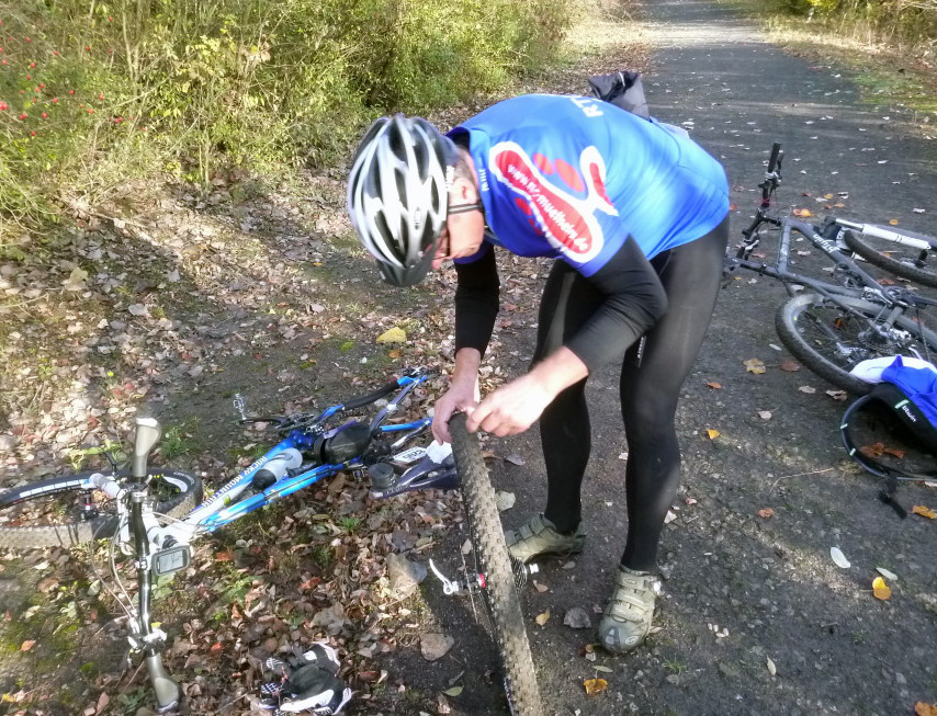 Ein platter Reifen, der einen der Dornen am Wegesrand als Ursache hatte, hielt uns ein wenig auf, zumal die guten X-King schwer von der Felge zu trennen waren, aber im Vergleich zogen immer mal wieder kleine und flotte Gruppen an uns vorbei, die wir aber bis ins Ziel noch häufiger wiedersahen.