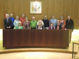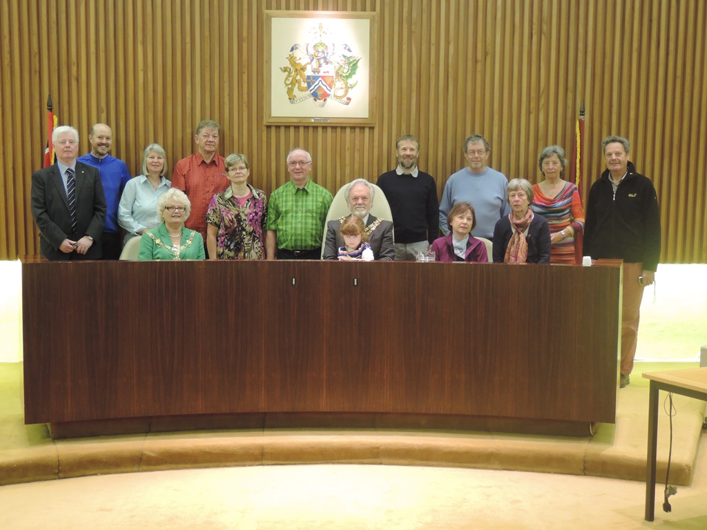 Am Montag folgten die Mülheimer der Einladung des Bürgermeisters ins Rathaus von Darlington. Dort erfuhren sie einiges über die Stadtgeschichte, das Stadtwappen und die Rolle der Quakerfamilie Pease in der Gründungszeit der Eisenbahn im 19. Jahrhundert.