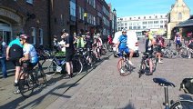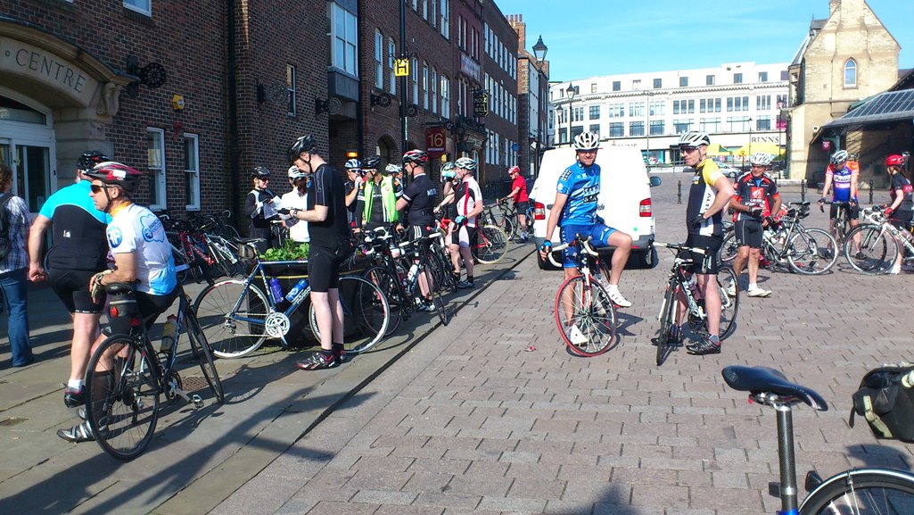 Am Sonntagmorgen konnte ich in Darlington den Start einer 50 Meilenrunde mit dem Rennrad beobachten. Der Darlington Cycle Club und zahlreiche Rennradclubs der Region um Darlington nahmen teil. Das Darlington Cycle Festival wurde vom Borough Council (Stadt Darlington) und nicht vom örtlichen Radsportverein organisiert. Es fand ansonsten unter ähnlichen Rahmenbedingungen, wie unsere RTF Veranstaltung des RTC Mülheim statt. Die Teilnehmer mussten eine Anmeldgebühr entrichten, der Startzeitpunkt war auf 8.30 Uhr festgelegt, die Strecke war nicht ausgeschildert, sondern die Teilnehmer erhielten einen Streckenplan.