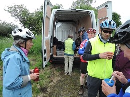 Mike Roff, der die Tour nach Darlington ausgearbeitet hatte, und Glynis versorgten die Radtourenteilnehmer auf der Strecke mit frisch gekochtem Tee, heißer Suppe und selbstgemachten Sandwiches. Die englischen Begleiter wechselten sich mit ihrem Fahrrad bei der Führung der Gruppe durch Hull ab. Leider hatte sich in meinem Hinterrad eine grüne Glasscherbe aus Holland eingenistet und verursachte schon nach ein paar Kilometern einen Platten. Unsere Freunde aus Darlington leiteten uns Mülheimer sicher über die 82 Kilometer nach York und am zweiten Tag über 95 Kilometer nach Darlington. Auf der zweiten Etappe stießen Peter und Nigel vom Rotary Club zur Gruppe. Sie nutzten die Fahrt als Training für die Coast zu Coast Fahrt von der englischen Westküste zur Ostküste.