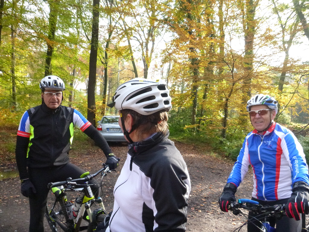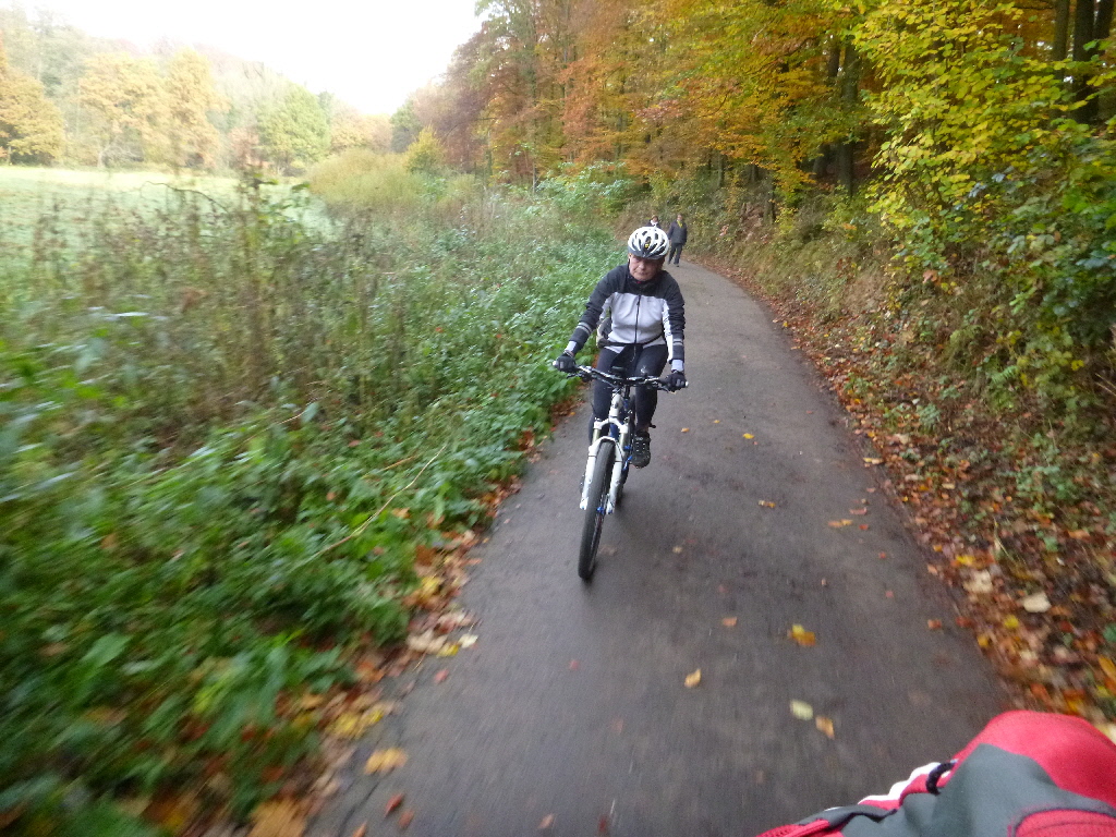weiter von Seite 1 Das gelang nur mäßig und bei den Hugenpots gab es dann Streit, der damit abgeschlossen wurde, dass wir uns auf eine lockere Version verständigten. Wir steuerten die Trasse nach Velbert an, bogen Richtung Golfplatz ab und fuhren recht locker zur Auermühle. Die Pause an der Auermühle verkniffen wir uns, weil das Preis/Leistungsverhältnis nicht stimmt und der Trubel an so einem Tag beeindruckt. Der Rückweg führte uns über Lintorf, die 6-Seenplatte bis in den Duisburger Wald, nahe beim Domizil der Müllers. Kaffee und lockeres Gespräch schlossen den Ausflug ab. ….ein gut genutzter Herbsttag am Beginn des November. km |