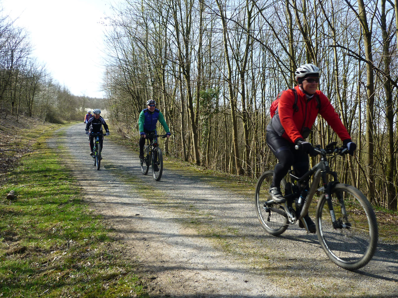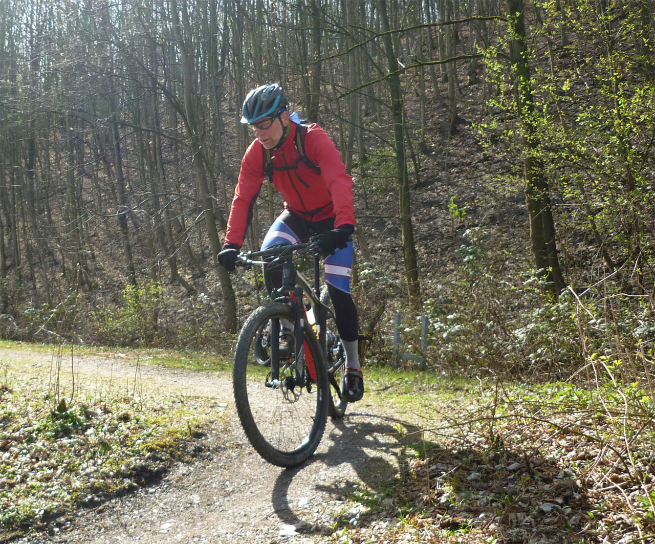Herbert Lettmann hatte mal wieder zur Krefelder CTF-Permanente mit Start am Freizeitpark Klingerhuf geladen. Mit 8 Teilnehmern war der Andrang nicht zu mächtig. Andreas Brembeck war ebenfalls angereist, hatte aber übersehen, dass es sich um eine Cross-Variante handelte und machte die Runde mit dem Straßenrad - abgesehen von 2 Wurzelpassagen blieb er souverän auf dem Rad – da es nicht nur schön, sondern auch trocken war, war die Runde auch mit 20-er Rennradreifen fahrbar. Allerdings ist er im Vorteil als versierter Cross-Fahrer. Am Klingerhuf hatten wir Konkurrenz von den Skatspielern, die aber eher durch ordentlich Tabakkonsum auffielen. Meist angeführt von Herbert war es eine Geniesser-Runde, ohne Stress, locker und mit dem schönen Ausblick von Grubenlampe auf der letzten Halde auch touristisch mit Highlights.