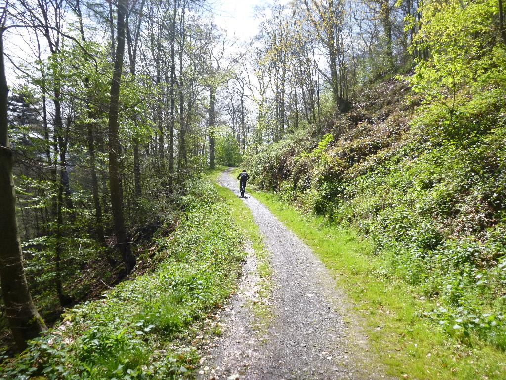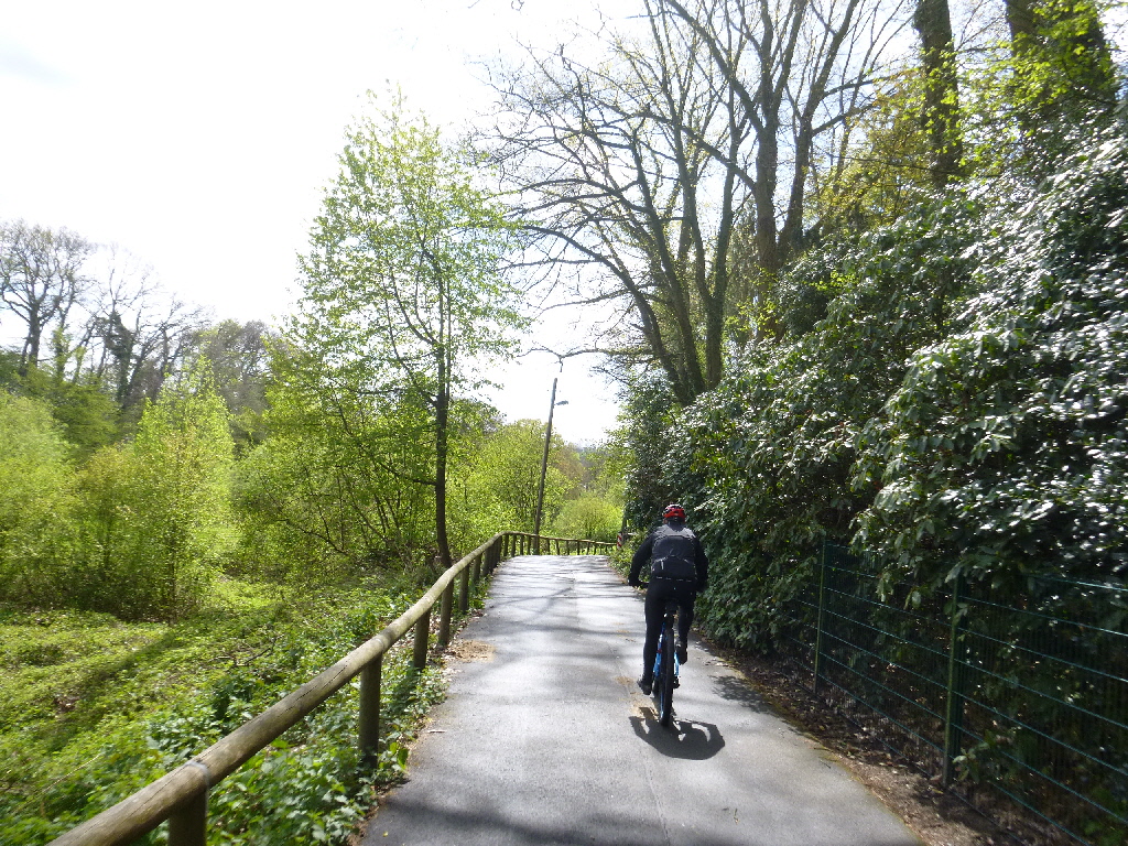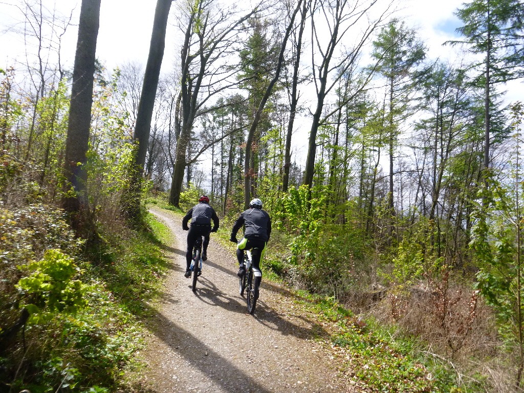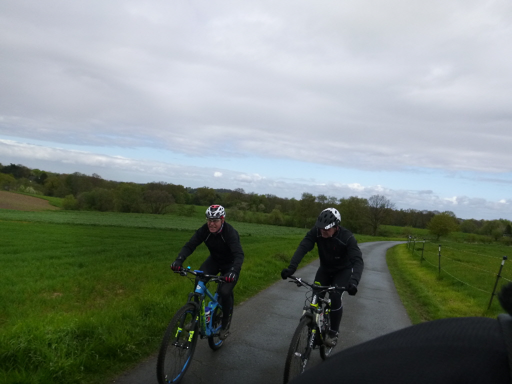Kai-Uwe hatte sich die Runde über die Permanente des RSC Essen Kettwig gewünscht. Sie ist so eine Art Nord-Süd-Verbindung. Mit Start am Haus Ripshorst (Oberhausen) windet sich die CTF südwärts bis nach Kettwig und zurück. Am Samstagmorgen musste Kai-Uwe aus Gesundheitsgründen passen und zu Dritt (Thomas, Rene, Klaus) suchten wir den passenden Anschluss an die Kettwiger Strecke. Da wir den Ripshorster Teil schon im vorigen Jahr getestet hatten, orientierten wir uns südlich. Durch den Witthausbusch und ins Rumbachtal stiegen wir unterhalb der Wetterwarte in die Strecke ein. 2 bis 3–mal verzockten wir uns auf dem Garmintrack und stellten dann fest, dass die Kettwiger den jeweils einfacheren Weg gewählt hatten. Die Streckenführung ist attraktiv und macht Spaß, viele Teilstücke kennen wir natürlich, aber in der Verknüpfung fanden wir auch neue und schöne Teilstrecken. Ein paar Höhenmeter nimmt man automatisch mit und sie sammeln sich über den gefahrenen Abschnitt immerhin auf rund 700 m. Natürlich genossen wir den Ausblick auf den Baldeney-See im ersten Frühlingsgrün von der Aussichtskanzel oberhalb von Kettwig vor dem der traditionelle Anstieg ordentlich kneift. Der Weg zurück führte dann wieder Richtung Wetterwarte und dann kürzten wir ab. Über den Blumenmarkt zum Flughafen und dann talwärts nach Menden schlossen wir die Runde am Kloster Saarn ab. Nach Ripshorst wegen der Punkte müssen wir dann zwar noch, aber der Kuchen im Kloster war fast besser als Punkte. Mit dem munteren Auf- und Ab ließ sich das kühle Wetter gut ertragen – die durchaus angenehme Alternative zur niederrheinischen Windkante.