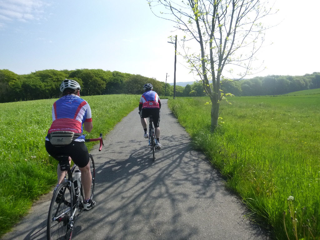 Aber der Reihe nach: In Schwelm war unsere Scan&Bike-Hardware im Einsatz, also gab es ein natürliches Interesse zu schauen, was so abläuft. Das Wetter war deutlich besser als vorhergesagt und so traten Kai-Uwe, Thomas und Klaus in die Pedale. Klaus hatte die erprobte Runde aus 2015 auf den Garmin geladen, also ging es zum Baldeney-See, nach Nierenhof, das Wodantal hinauf und dann hinüber nach Schwelm. Am See hatten wir einen Samariterauftrag auszuführen, als ein flotter Radler verwundert feststellte, dass sein Vorderreifen platt war. Mit Rat, Tat und Werkzeug halfen wir ihm sein Rad wieder flott zu machen und damit war die erste gute Tat des Tages vollbracht. Die kleinen Rampen hinauf nach Schwelm bewältigten wir recht gut und in Schwelm war immer noch tolles Wetter, trotzdem fluchten die Schwelmer, angesichts der mittelmäßigen Teilnehmerzahlen. Der Kuchen war ok, die Anmeldecrew hatten ein paar kleinere Probleme zu klären und dann ging es wieder heimwärts. Für den Rückweg wählten wir den Weg über Wuppertal Dönberg. Rund 1.000 Höhenmeter waren verkraftet und das Weizen in Mintard war prima. Am Sonntag waren wir wieder Drei, aber statt Kai-Uwe hatte sich Brigitte für die Runde präpariert. Trasse bis Velbert, Kaffeepause und Trasse zurück bis Kettwig und schon war die flache Runde bewältigt. Am Mintarder Büdchen gab es wieder Weizen und Kaffee. Roland kam ebenfalls ans Büdchen und war für das Wochenende der Siebte im Bunde. Er war pünktlich am Start gewesen, war allein losgefahren, hatte die Runde vor Ort gedreht und jetzt hatte er, so wie wir auch, das Weizenbier vor Augen. Velbert war mit knapp 70 km und rund 450 Hm einfach und schnell erledigt. Dank verkehrsarmer Routenführung ein schönes Wochenende und die Kreuzchen auf dem Wahlschein wurden auch noch erledigt. km