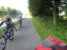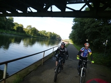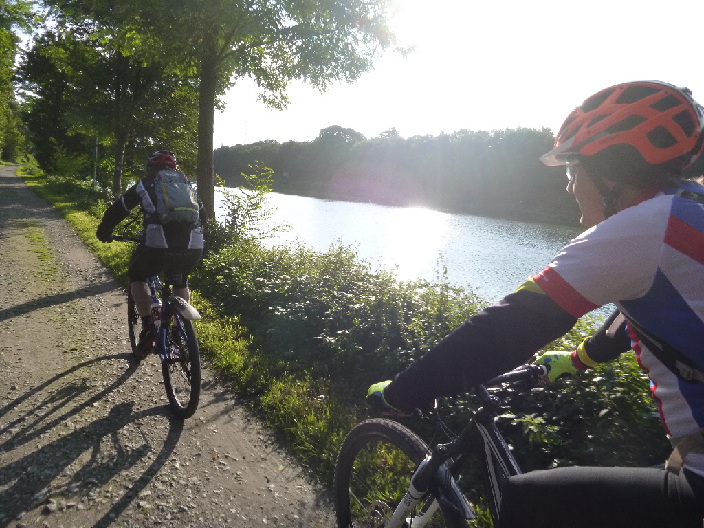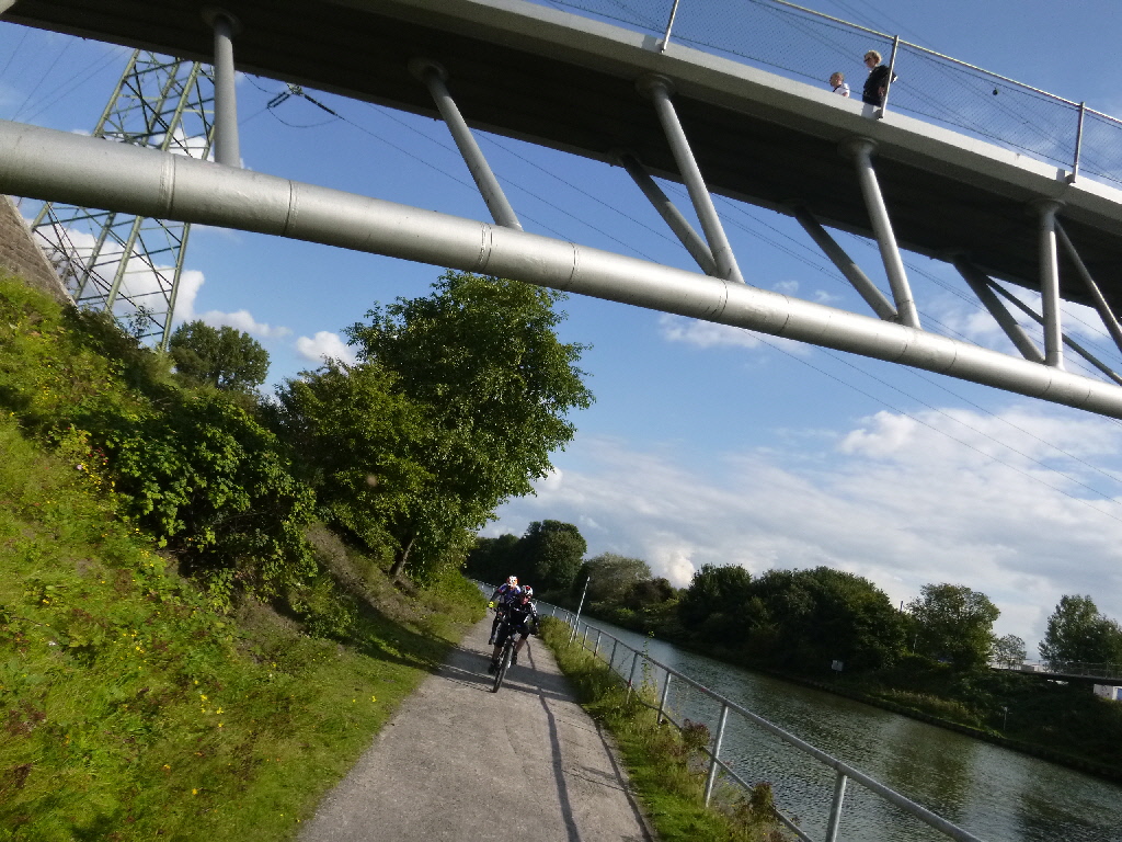 Kai-Uwe, Thomas und Klaus hatten so gewählt und gingen auf die Runde. Morgens um 9 war es noch recht frisch aber es blieb trocken, wurde sonnig und mit knapp unter 20 °C für Radler optimal warm. Wir fuhren mit moderatem Tempo, sammelten Kilometer und suchten nur ab und an nach dem „rechten“ Weg. Am Schiffshebewerk Henrichenburg war die Brücke in Arbeit und es musste eine Umgehung gesucht werden. Wir fanden sie entlang des Kanals, nachdem wir ein Rentnerehepaar befragt hatten. Der Umweg war nur geringfügig länger, dafür schöner als der Radweg an der Bundesstraße. Nach knapp 3 Stunden war Waltrop erreicht. Wir sammelten die Punkte ein, Kuchen, Brötchen, Würstchen waren die Kalorienbringer der Wahl und das Schwätzchen mit Axel und Hans-Werner im sonnigen Schulhof lockerte die Pause auf. Der Rückweg vermied ein paar unnötige Schlenker, bot sonnige Aussichten und brachte Kai-Uwe ein wenig an Grenzen. Zuerst ärgerte ihn der rechte, dann der linke Oberschenkel und das Knie protestierte dann dauerhaft gegen die lange Runde. Immerhin erreichten wir gemeinsam die Mülheimer Stadtgrenze und kehrten spät, halbwegs müde und hungrig und wohl auch etwas schmerzgeplagt zurück an Heim und Herd. Nichtsdestotrotz – die lange Kanalrunde hat somit auch 2017 stattgefunden und wenn man sie nicht zu häufig strapaziert ist sie ein schönes radsportliches Unterfangen. KM |