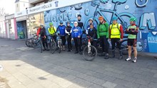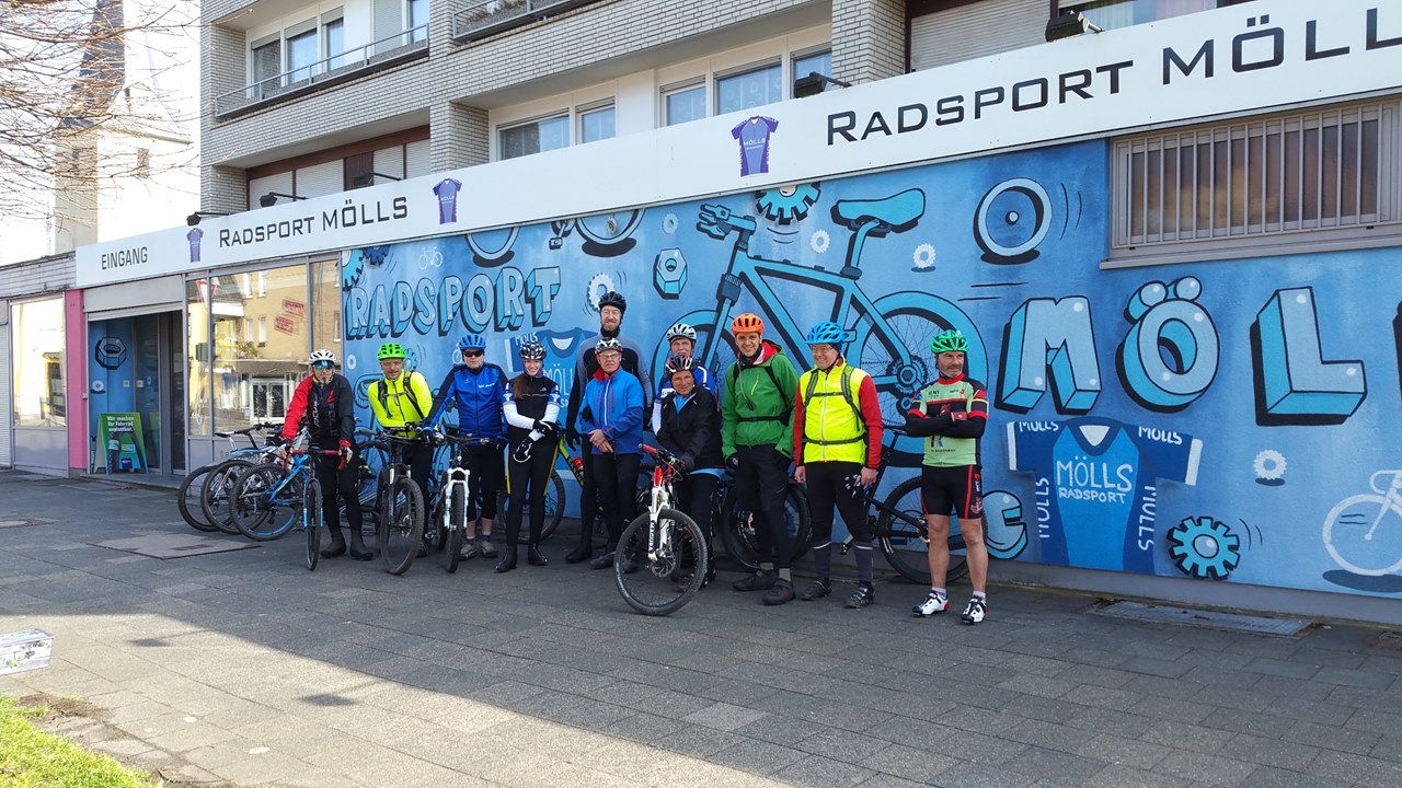 Inzwischen hat es so etwas wie Tradition: Einmal im Jahr treffen wir uns mit Herbert Lettmann in Moers und wir drehen die „geführte CTF am Niederrhein“. Diesmal waren es nur 12 Gäste, die sich am Radsportladen in Moers trafen und die Moerser CTF-Permanente unter die Räder nahmen. Die Teilnehmer waren gewohnt vielseitig, 1 Crosser war angereist und litt unter einem bösen Platten, dessen Beseitigung eine lange Zwangspause bescherte. Zum Ende hin gab es einen kleinen Leistungseinbruch und eine Dreiergruppe verkniff sich den letzten Hügel - nahm den kurzen Rückweg nach Moers. Walter wählte bisweilen ein paar Abkürzungen, deren erste eine mittlere Suchaktion zur Folge hatte. Dafür kann man ausgewählte Fotos betrachten, die Walter auf seinen planmäßigen Abweichungen geschossen hat. Am Café Hoenen endete die Runde und beim kleinen Absacker wurde ausgewertet. Es war gewohnt nett und wiederkommen ist angesagt, km |