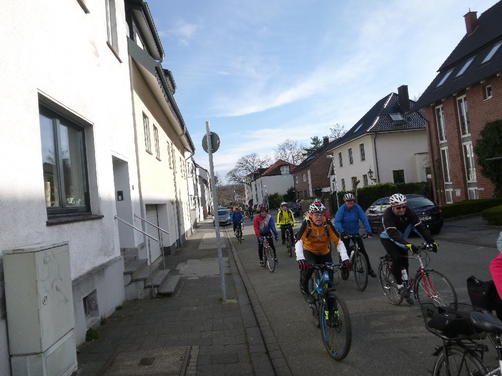 An der Mintarder Straße trafen sich 25 Gäste und Mitglieder des RTC Mülheim zum traditionellen Karfreitagsausflug. Das Wetter hatte jedenfalls recht viele Radler auf den Ausflug gelockt. Am Start servierte Marlies den ebenfalls traditionellen Kaffee und nach den Begrüßungsrunden startete Klaus-Dieter Taute und die Radler/Innen folgten in langer Lindwurmmanier.