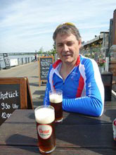 In erreichbarer Nähe waren am Wochenende 3 Ziele im Angebot: Schwelm, Gelsenkirchen und Rees. Thomas hatte sich die Sternfahrt nach Schwelm vorgenommen, am Treff war aber nichts los und Kai-Uwe ist noch „kniegeschädigt“, also nur bedingt bergtauglich. So beschlossen sie im Flachen zu bleiben und drehten eine schöne Runde. Es ging nach Kaiserswerth, dann über den Rhein und über Niederkassel zur Düsseldorfer Altstadt. Auf den Rheinterrassen war Kaffeepause angesagt und über Schloss Heltorf fuhren sie wieder nach Hause. Die Route war im Wesentlichen autofrei und somit sehr entspannend. So kamen sonnige 80 km knieschonend zusammen und die Wertungskarte blieb unbenutzt. Am Sonntag hatten wir die Überlegung Rees anzufahren. Bereits die Planung auf dem Rechner war holprig verlaufen, weil der Garmin sich wohl eine Macke zugezogen hatte. In der Folge wurde die Zeit knapp und am Treff fehlte mir der Riegel und die Flasche – für eine 120 km Runde eine schlechte Voraussetzung. Die Kontrolle des Wetterverlaufs ergab, dass spätestens auf dem Rückweg der Regen nicht zu umgehen war. Kurzum, wir wählten die Hausrunde um den See. Um dem Trubel zu entgehen, fuhren wir den Kutschenweg hinauf (schlechte Zeit !) und nahmen noch ein paar Höhenmeter bis zur Abfahrt nach Kupferdreh. Am Haus Scheppen gab es Kaffee mit Preiserhöhung, vielleicht ist der Preis an den Ölpreis gekoppelt. Der Rückweg verlief flott und zu Hause fielen die ersten Regentropfen. Der improvisierte Verlauf passte also in die radsportlichen Rahmenbedingungen. |