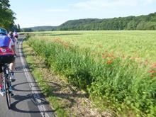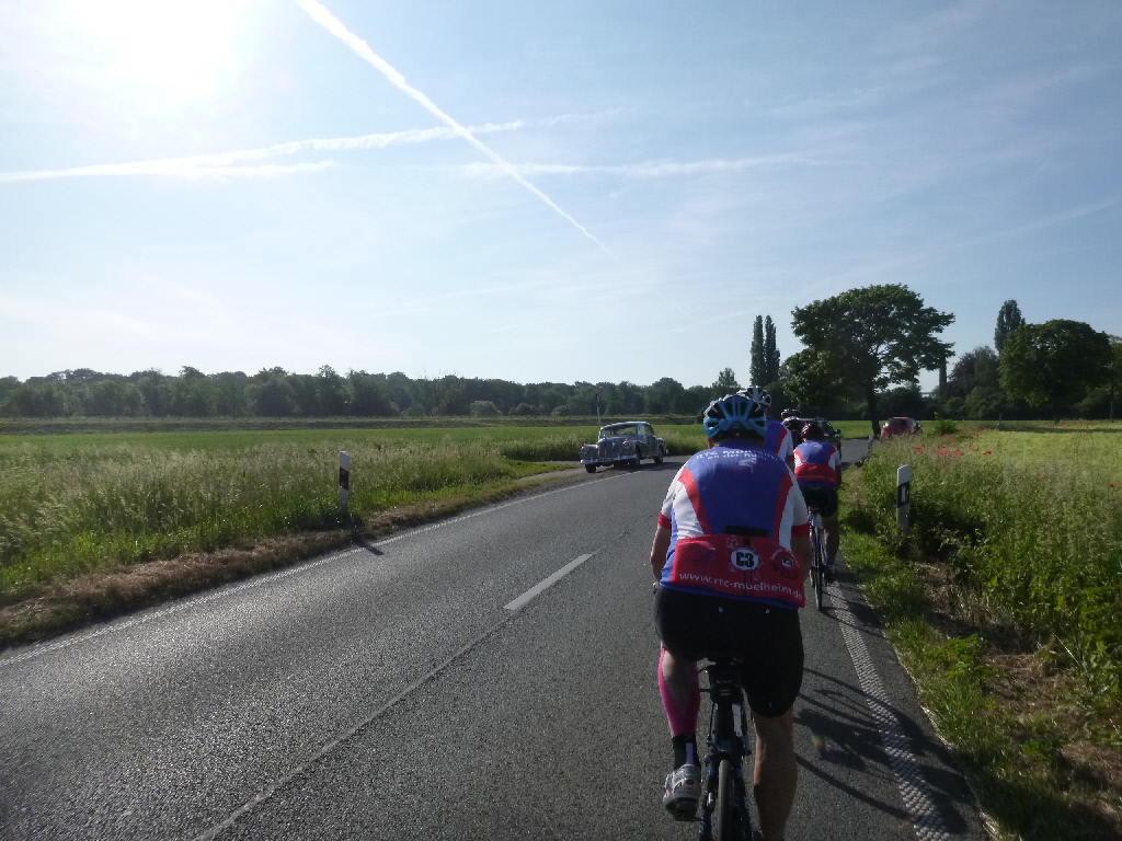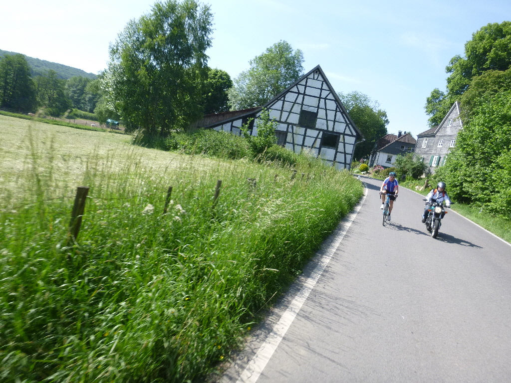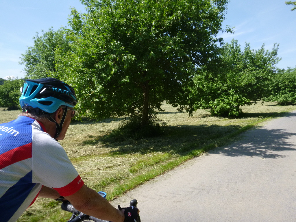 Wir haben uns auf Friedels Treff um 8:45 Uhr verständigt. Viel los ist nicht, zu siebt wird gestartet und Harry will nicht über den Berg, jedenfalls nicht, wenn auf ihn gewartet werden muss. Er fährt also am Abzweig auf die Trasse geradeaus. Aber Harry wird nächstes Jahr 80, dafür ist er auf dem Rad immer noch fit, obwohl ich gehört habe, dass er das mexikanische Trainingslager nächstes Jahr in Frage stellt. In dem kurzen steilen Anstieg auf die Trasse gibt es Ärger, weil Friedhelm mit seiner eleganten Fahrweise Dieter und Heinz-Jürgen abdrängt, sie müssen dann zu Fuß auf die Trasse wandern. Langsam sammeln sich wieder alle auf der Trasse und Friedel sorgt sich um Harrys Verbleib, für den sie doch extra moderat gefahren sind. Über die Trasse geht es im leichten Zick-Zack und andere Trassenelemente bis zur Birkenhöhe. Frank freut sich über unseren Besuch, sie haben an der Datenschutzverordnung geknabbert, aber die Teilnehmer sehen das eher gelassen. Der Kuchen ist gut und der Kaffee auch. Bei Endspurt gehen die Kollegen wohl auf direktem Weg gen Heimat. Die Landschaft bietet traumhafte Aussichten. Bei geringem Autoverkehr ist der Spaß trotz der Anstiege inklusive. Am Ende landen wir bei Haus Scheppen, kaufen 2 überteuerte Kaffeepötte und lauschen dem kranken Röhren der 2-Räder mit Verbrennungslöchern und Kühlrippen. Nach Hause geht’s normal und ohne weitere Pause, das Sommerwetter lässt die Räder laufen und wir sind ziemlich früh daheim. km
