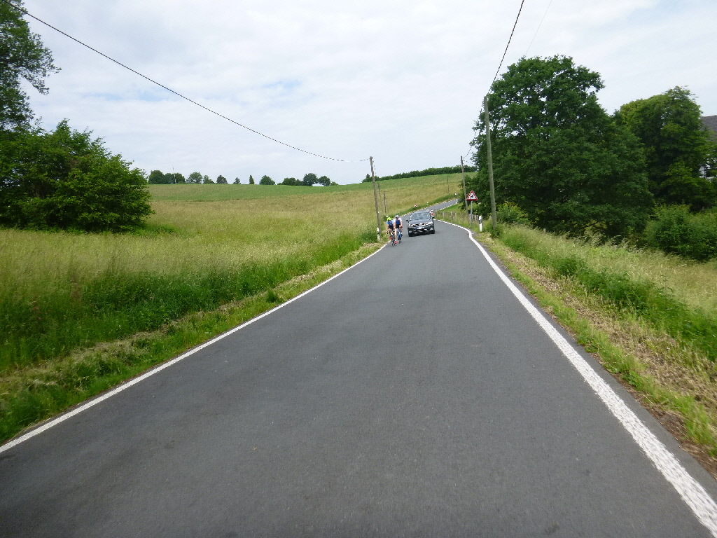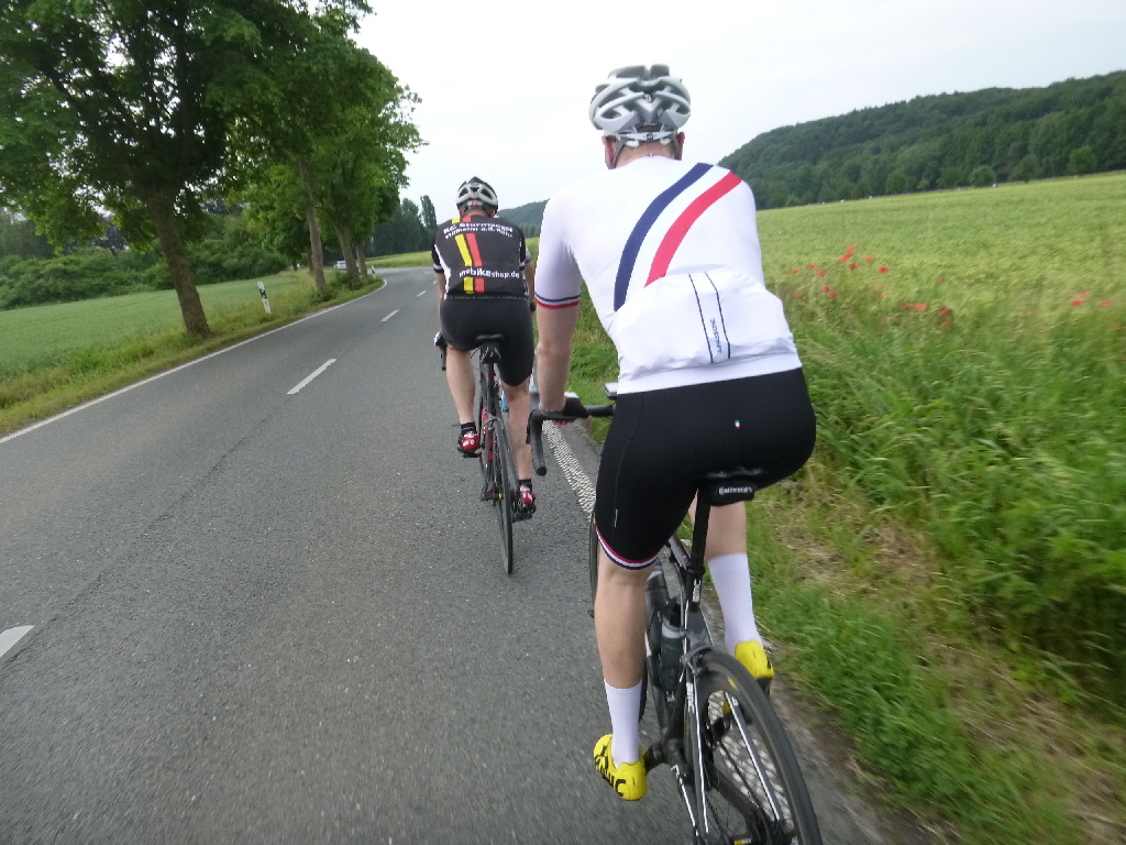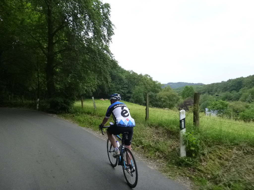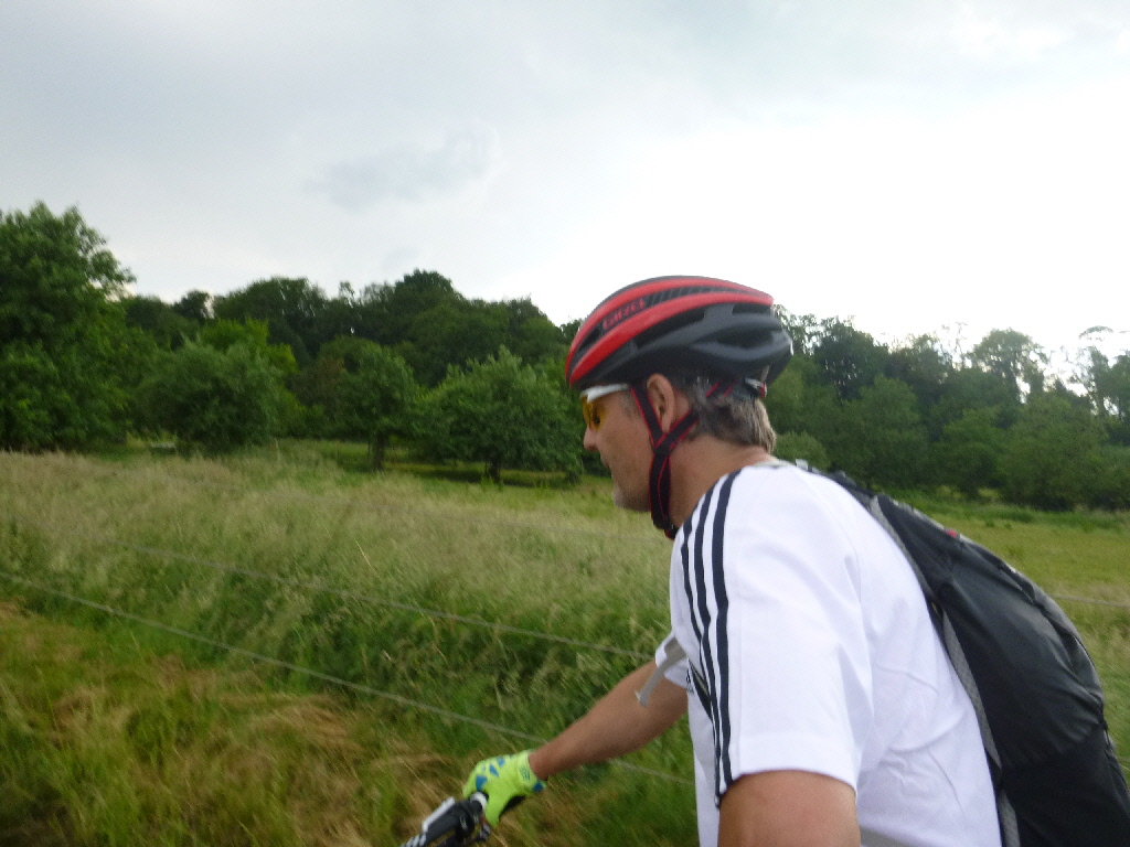 Kai, René und Thomas trafen sich wie üblich mitwochs, um das schöne Wetter zu nutzen. Mit dem MTB sollte es nicht so lange gehen (Termine), der Wunsch des einen, und ein paar zarte Höhenmeter, der Wunsch des anderen. So fuhren wir eine Schleife um und über den Auberg und dann noch einen Kringel bei Hösel. Der eine bog dann ab nach Hause, die anderen nahmen sich noch die restlichen zarten Höhenmeter vor. Da das Kraut im Moment nur so wuchert ist das Trailfahren nicht so toll. Breitere Feldwege sind da die bessere Wahl. Je nachdem, wo man so durchfährt, bietet sich so manch unangenehmes Getier zur Mitnahme an. Am Ende hatten wir dann rund 41km und ca. 450 hm in lauer Abendluft gesammelt. TT Am Feiertag hatten wir uns auf 10 Uhr verständigt, am Treff waren noch Marius und 2 Sturmvögel – mehr Teilnehmer gab’s nicht und wir folgten zunächst den schnellen Radlern, bogen aber an der Trasse nach links ab. Wir folgten der Trasse und dem alten Track der RTC-Permanente. Die Sammlung der Höhenmeter ist beachtlich, aber wie gewohnt geht es durch die allerschönste Landschaft in unserer Umgebung. Am Bergerhof machten wir Pause, bewunderten die zahlreichen Gäste mit Kindern und Hunden, die sich Pommes und Säfte jeder Art schmecken ließen. Wir leisteten uns Holundersaft, tankten noch ein bisschen Sonne und dann ging es weiter. Ab Bergerhof geht es in der Tendenz eher abwärts und am Baldeney-See gab’s nochmal Kaffee und dann waren zu Hause knapp 90 km absolviert. km