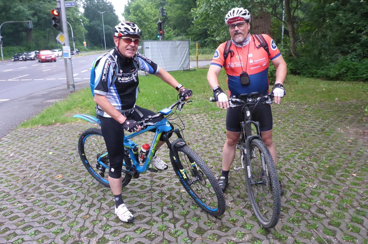 Am Samstag waren wir mit Kai-Uwe unterwegs. Damit hatten wir einen neuen Starfotografen im Backstage - die Ergebnisse sind zu beachten! Ansonsten war flach angesagt, in dem Bewusstsein einem Regenguss aus dem Weg zu fahren. Mit Ziel Rheindamm und Aschlöksken lagen wir richtig. Allerdings war der Trubel an der Rheintheke noch sehr zurückhaltend. Kai-Uwe testete die sanitären Anlagen und meinte, Händewaschen vor und nach dem Betreten wäre sinnvoll. Die Zeit reichte für das alkoholfreie Weizen, während sich die Gastwirtschaft für späteren Andrang einrichtete. Der Rückweg war kurz und ebenfalls flach und ließ Zeit für Einkauf und ein paar Reparaturaktivitäten. Am Sonntag besuchten wir Rainer und Herbert vom Radsportbezirk Krefeld an der Klingerhufer Theke. Die Idee war eine Runde mit dem MTB, aber die geheimen Outdoor-Wege am Niederrhein müssen noch erschlossen werden. Die Versammlung der alternden Recken zur Punktesammlung war schon beeindruckend, lassen aber durchaus Zweifel an der Perspektive des Punkterankings in der RTF-Wertung aufkommen. Zielfahrt „leicht gemacht“ blieb aber angesagt: der Kaffee mit einem Stückchen Blechkuchen (durchaus lecker und schön süß) für 4 € kam kommerziellen Zwecken zu Gute und an der Punktekasse kamen ein paar hundert Euro in die Kasse. Zurück wählte der Garmin die traditionelle Sternfahrtroute bis wir am Duisburger Hafen abwichen und am Innenhafen die Gastronomiemeile ansteuerten. Interessant, die baulichen Erweiterungen zu besichtigen. Unser Abstecher Ruhrmündung war fotografisch bedeutsam und interessant, weil - da waren wir noch nicht. Mit dem kleinen Abstecher in die Duisburger Innenstadt waren wir gänzlich abseits der MTB-Trails. An der Uni war der Duisburger Wald dann wieder erreicht und wir waren auf dem Heimweg. Am Ende der Zielfahrt schien reichlich Sonne, die wir auch abseits vom Radsattel genießen konnten. km |