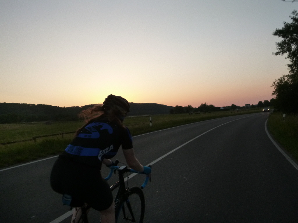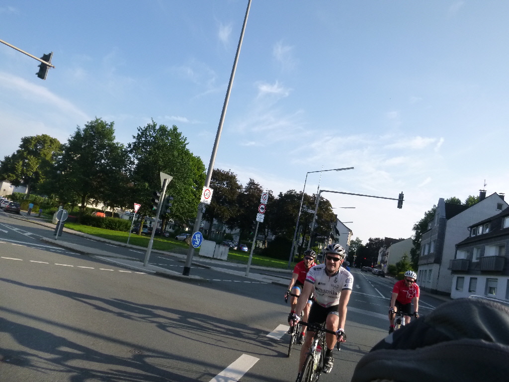 Nach 2 Monaten Sendepause war diesmal wieder Betrieb auf dem Chat. Angesichts des Wetters entschlossen sich Andreas, Jessy, Rene, Felix und Thomas zur Abendrunde. So vielzählig starteten wir schon lange nicht mehr. René der schon abgesagt hatte, kam wider Erwarten doch. Eine Runde mit Andreas liegt liegt knapp 2 Jahre zurück. Wir waren zuletzt beim Abschildern der 2016er RTC RTF unterwegs. Jessy hatte mich voriges Jahr beim Münsterland Giro abgehängt. Na und Felix ist meist nur noch auf dem Fixi sportlich auf Achse. Da wir aber im Sommer gemeinsam Pässe in Bayern und Österreich unter die Räder nehmen wollen, ist ein bisschen Training nützlich. Ich selbst bin mittwochs meist müde und platt, vor allem wenn ich mit dem MTB unterwegs bin. Doch diesmal passte Motivation und Frische zusammen, für mich war es ein guter Formtest. Zum Aufwärmen ging es nach Kettwig, dann auf die Trasse. Es lief flott und es war immer gut Druck auf dem Pedal. Ab Heiligenhaus lief es etwas ruhiger. Über Velbert fand an einem kleinen Berg das erste Ausscheidungsfahren statt. Ein paar andere Radsportler provozierten den Speedtest, aber wir konnten sie versägen. Wir haben gewonnen!! Es folgte die schöne Abfahrt, die leider mit Querbaken gespickt ist, um die wilden Motorradfahrer zu bremsen. Für uns flotte und harmlose Rennradfahrer ist es jedenfalls ein Ärgernis. Über Langenfeld ging es zum Sender hoch. Jessy holte den Bergpreis und ich sicherte mir die Rote Laterne. Immerhin war ich froh, dass ich ich kein Sauerstoffzelt gebraucht hatte. Über Nierenhof ging es heimwärts mit einer kleinen Pause nach Haus Scheppen. Die Rast hatten wir uns verdient. Zu Hause standen dann rund 80 km und 600 Hm auf der Uhr. Es ging uns immer noch gut der Formtest zeigte, das die Berge kommen können. TT |