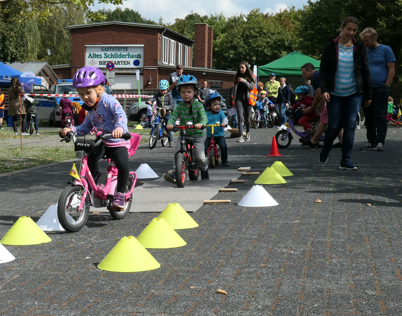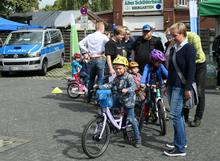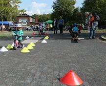 Bis 11 Uhr war der Andrang noch sehr übersichtlich – ein paar Regentropfen schienen den Ansturm vermindert zu haben. Aber dann ging es zügig voran und Eltern und 3- 6-jährige Mädchen und Jungen gingen auf die 10 Stationen, die vorher sorgfältig aufgebaut worden waren. Neben der Strecke waren mit Würstchenstand, Info-Stand der Polizei und der Verkehrswacht für Unterhaltung- auch für Erwachsene - gesorgt. Die teilweise recht anspruchsvollen Übungen wurden von den Teilnehmern mit Bravour gemeistert und die Resonanz war gut. An der Anmeldung erhielten die kleinen Radler eine Urkunde und durften in die Schatztruhe greifen und ein kleines Präsent aussuchen. Nach 14 Uhr war der Parcour dann schnell mit der großen Zahl von Helfern wieder in Kellern und Autos verstaut. Schönes Event und mit dem Wetter war das Glück auf der Seite der Veranstalter. km |
