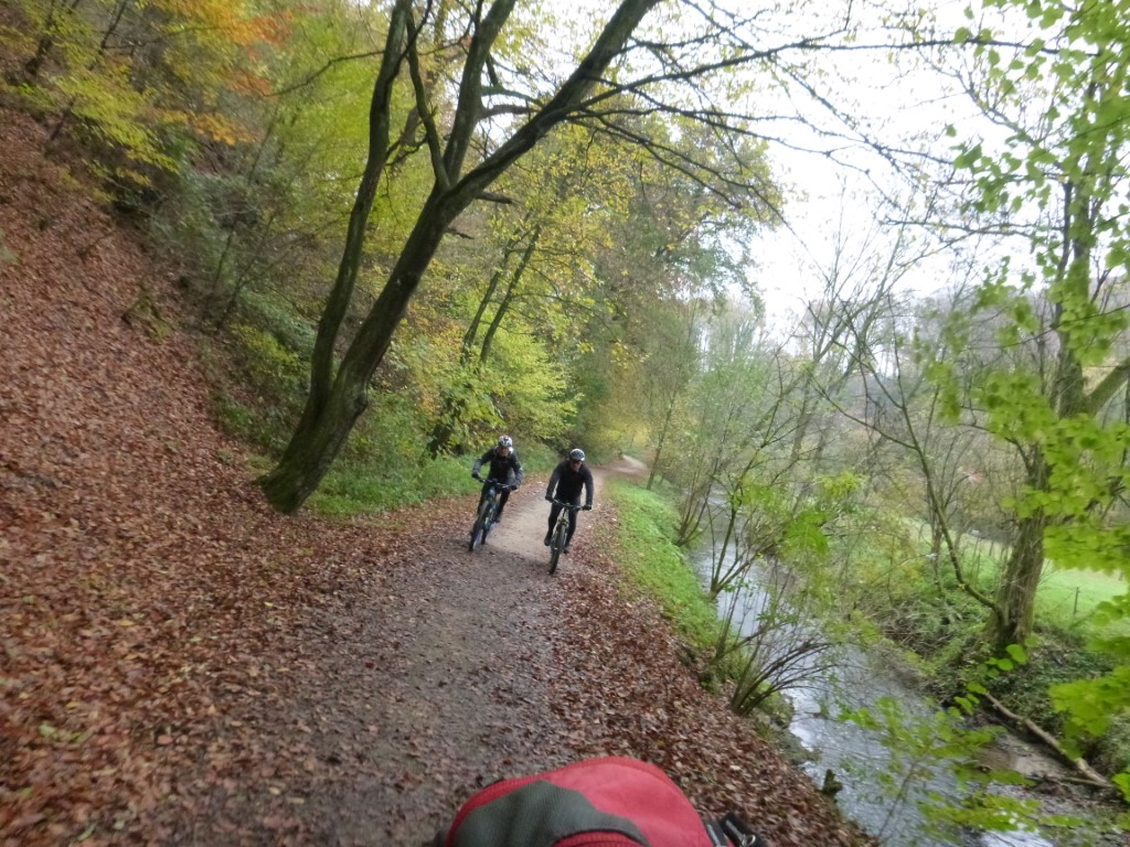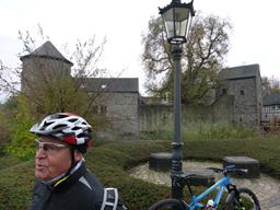 Rene hatte sich auch mal wieder zum Treff gewagt und wir freuten uns die erste MTB-Runde des Winterhalbjahres 2018/19 zu Dritt in Angriff zu nehmen. Thomas hatte einen groben Plan, der uns vom Ziel her zum Flughafen Düsseldorf führen sollte. Über den Auberg Richtung Duisburger Wald näherten wir uns tatsächlich Düsseldorf und das bemerkenswerte Highlight war auf halbem Weg die Wasserburg bei Ratingen. Dann wichen wir von der Zielrichtung ab und wandten uns den Pfaden zur Auermühle zu. Entlang dem Auerbach begegneten uns viele Hundebesitzer, die (leider) zumeist eine kleine Hundemeute im Griff zu halten suchten. Unverletzt erreichten wir die Höhen bei Heiligenhaus und drehten über Homberg wieder ins Angertal zurück. Nicht immer crossmäßig ging es über Hösel heimwärts mit der Kaffeepause im Ruhrtal-Casino. Knapp 60 km und etwa 600 Hm waren ein guter Einstieg ins Wintergeschehen. km