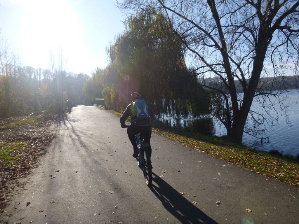 Am Samstag waren wir mal wieder „vielzählig“, also zu Viert. Kai, Rene, Thomas und Klaus. Eine gute Gelegenheit im Duisburger und Ratinger Wald Trails und Wege zu erkunden. Der große Anteil an Laubwald in dieser Region fasziniert mit dem Farbenspiel und den Kontrasten des Waldes. Am Start mussten sie wieder mal etwas warten, weil ich zu knapp kalkuliert hatte. Es ist immer noch so, dass die Zeit genutzt werden muss und dann wird’s halt später. Die Startzeit um 11:30 Uhr passt trotzdem gut, denn viel wärmer wird es nicht mehr. Die Idee die Essener Runde zu drehen wird verworfen und wir radeln in den Auberg, nehmen den kleinen Trail, kreuzen die B1 und könnten bei Rene oder Kai zum Kaffee einkehren. Machen wir aber nicht, sondern es geht weiter in die Duisburg/Ratinger Richtung. Im Ratinger Wald sammelt Thomas ein paar Nachlässe der inkontinenten Vierbeiner auf und muss hinten fahren. Der Trail am Dickelsbach bietet dann Gelegenheit eine Reinigung vorzunehmen und es geht geruchsfreier weiter. Am Ende führt es uns wieder ins Ruhrtal-Casino. Der Kaffee ist frisch und tut gut. An die Kälte hat man sich wieder halbwegs gewöhnt, aber ansonsten können wir die klare Luft und die Sonne genießen. Am Sonntag gehen Thomas und ich auf die Seerunde, es ist noch ein Stück kälter als am Samstag und da wir weitgehend auf Asphalt bleiben zieht es durch alle Ritzen. Am See hält sich der Betrieb in Grenzen, aber einen Kaffee nehmen wir mit. Das sportliche Wochenendprogramm ist damit dann abgeschlossen und hat gut getan. km |