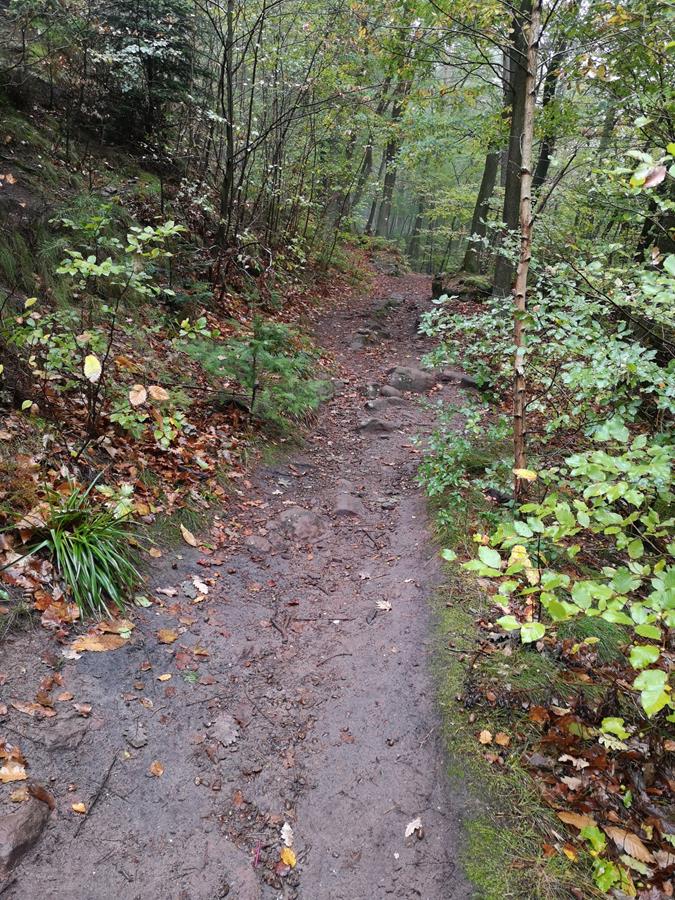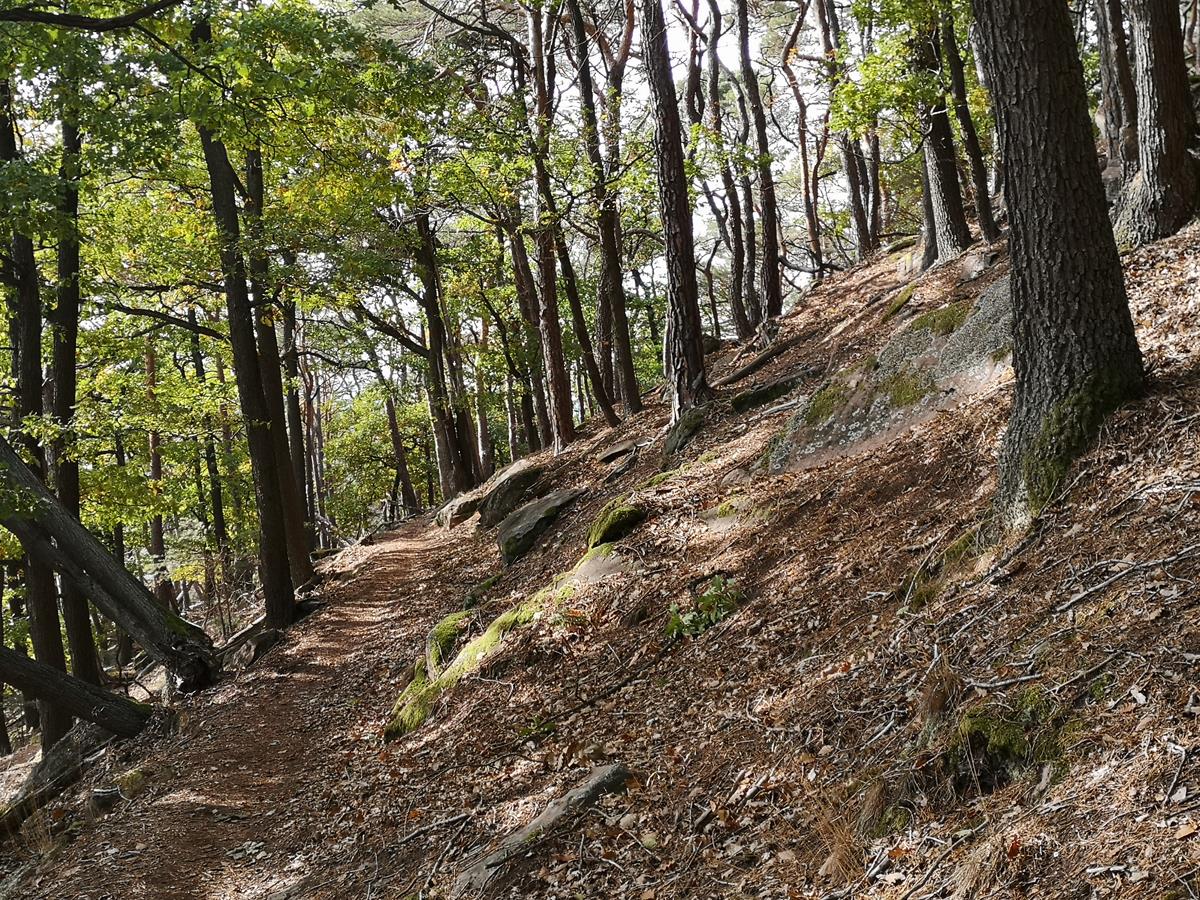 Das Kloster St. Maria war ein Kloster der „Schwestern vom Göttlichen Erlöser“, erbaut in den fünfziger Jahren und in 2019 verkauft an einen polnischen Investor. Die verbliebenen Schwestern haben Bleiberecht und sind Teil des neuen Hotelkonzepts. Das Haus ist weitläufig, angenehm ruhig und hat noch viel Klostercharakter. Das klösterliche Ambiente dient bisweilen als Werkstatt für Mülheimer Instrumentenbauer und Brigitte beschäftigte sich mit dem Bau einer Ukulele, die im Verlauf der Woche im Workshop erstellt wurde. Meine erste MTB-Runde am Sonntag – geplant via Komoot – lag bei 45 km. Am Ende standen auch knapp 1000 Hm auf dem Display. Die Highlights waren ein beeindruckendes Felsengebilde, die Ruine der Burg Frankeneck, Hochspeyer und die Finster-Breitbach-Quelle. Die Felsmonumente finden sich im Pfälzer Wald häufiger. Sie sehen aus wie riesige Toasts und bilden eine geologische Formation Sedimentschichten ab, die jede für sich für eine Abbildung prähistorischer Gesteinsformationen darstellen. Die Burg Frankeneck stammt sicher aus der obersten der geologischen Formationen. Die Ruine bietet besonders schöne Aussichten in das Tal nach Frankeneck. Quer durch die endlose Waldregion führte der Weg nach Hochspeyer. Von dort hätte der Heimweg gefunden werden müssen. Allerdings waren mehrere Anläufe nötig, denn die teils trailigen Wege führten nicht immer in die gewünschte Richtung. Nach kurzer Rast an der Finster-Breitbach-Quelle war dann der Weg zum Kloster gefunden. Am Montag war Regen angesagt und so wurde Bad Dürkheim per PKW angefahren, ein Radsportgeschäft und ein Weingut lagen am Weg. Am Nachmittag stand noch ein Fußmarsch auf dem Programm, ein paar Kilometer mit passenden Höhenmetern. Dienstag hatte ich mir eine Gravel-Tour geplant. Leider war die Umsetzung sehr straßenlastig und so begab ich mich auf Nebenwege. Das war dann spannend und unwegsam. An einem Wegeplan für Nordic-Walking wählte ich die Schwarze Runde (ca. 13 km) mit der Vorstellung fahrbare Wege vorzufinden. 2 km nach dem Einstieg bog dann der Weg in einen schmalen Trail ab, sehr schön, aber fortgeschrittene Fahrtechnik war eindeutig gefragt. Als höchster Punkt der Runde waren 500 m angesagt und je höher man kam, desto felsiger und verblockter wurde der Weg. Nicht weit von oben entschied ich mich dann fürs Abfahren und kam in Neustadt an der Weinstraße aus. Auf den angebotenen Radwegen war der Weg zum Kloster dann wieder fahrbar. Am Mittwoch ließ ich mich durch die Wälder treiben und stellte erneut fest, dass die Wegevielfalt groß ist, aber das Ziel dabei leicht aus dem Visier gerät. Häufig bietet sich die Wahl zwischen 2, 3 oder auch 4 Wegen (die das Navi nicht alle abbildet) und nicht selten war der gewählte Weg dann falsch. Dennoch war die Runde wunderschön, weil der Herbstwald in allen Farben leuchtet und irgendwann findet man den Weg auch wieder zurück ins Quartier. Am Donnerstag hatte ich mich auf Sightseeing eingestellt. Das Wetter war regnerisch angesagt, also Aktion Auto und zu Fuß. In Landau machte ich den Stadtbummel mit Mittagsessen und am Nachmittag war die Burg Trifels das Ziel. Das Autofahren in den Pfälzer Bergen hat übrigens einen ordentlichen Spaßfaktor. Unterhalb der Burg wurde das Auto geparkt und die Burg zu Fuß erklommen. Auch hier fanden sich die hochaufragenden Sedimentfelsen. Der Burgrundgang war preislich günstiger als der Besuch einer Trump-Wahlveranstaltung, aber immerhin, zumal weder Richard Löwenherz, noch Heinrich VI. zugegen waren. Die Reichsburg ist in einem guten Zustand und wird gepflegt. Der Abstieg war dann wieder etwas mühsam, weil ich den Hinweg verfehlte. Der Parkplatz, der am Ende meines Abstiegs lag, war nicht der, wo mein Auto abgestellt war, aber mit etwas Aufwand fand ich den korrekten Parkplatz ca. 500 m weiter. Der Freitag war Wellness-Tag, Spaziergang und Massage trösteten über das nasskalte Wetter hinweg. Etwas besseres Wetter hätte dem Radfahrer ganz gut getan, aber so sind wir schon mal auf die herbstlichen Touren vor der Haustür eingestellt. Na ja, und das Corona-Risiko war im Pfälzer Herbstwald wohl nicht so groß. Am frühen Samstagnachmittag waren wir dann zurück im Corona-Hotspot Mülheim an der Ruhr. km |