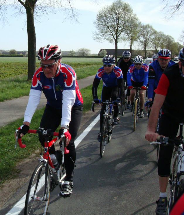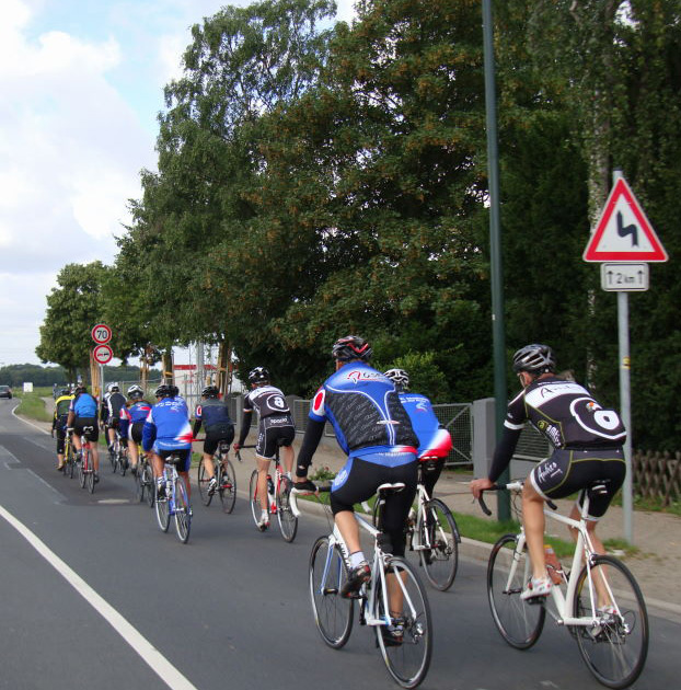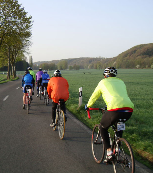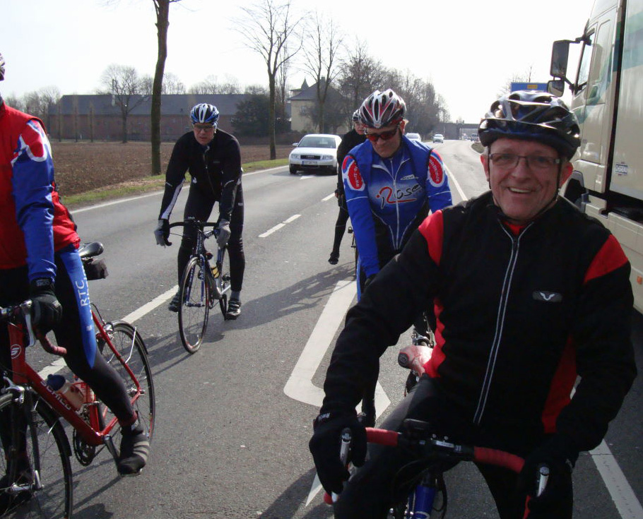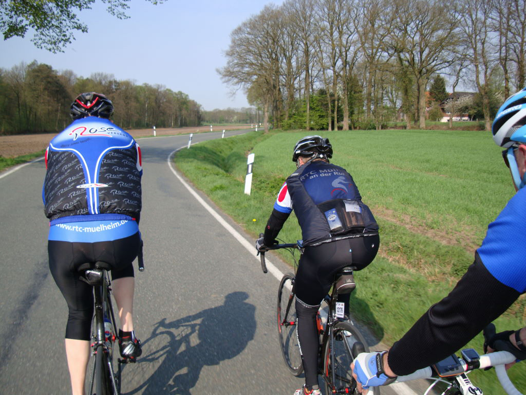 Das Ziel hiess Kevelar Kervenheim. Zu Elft, bei sonnigem Wetter und cirka 18°C gingen wir auf die Reise. Nicht nur ich, war etwas leicht geschürzt unterwegs. Die morgendliche Sonne und Frühlingsgefühle verleiten schon mal dazu, stofftechnisch unterdimensioniert zu starten. So rauschten wir also „cool“ dahin und traten in die Pedale.
