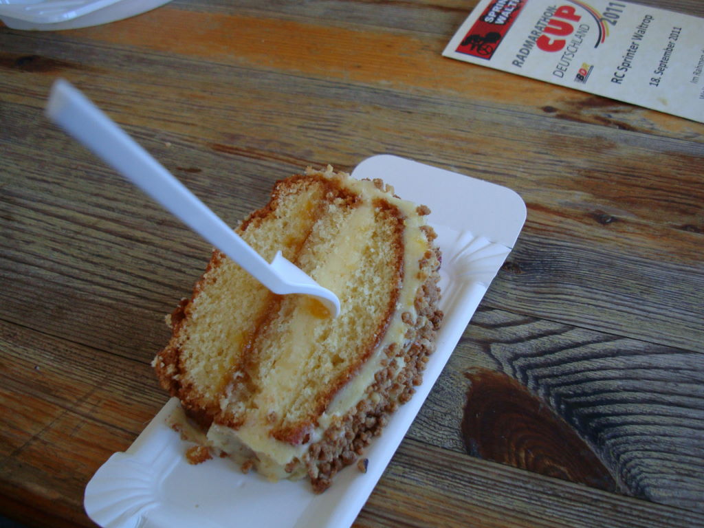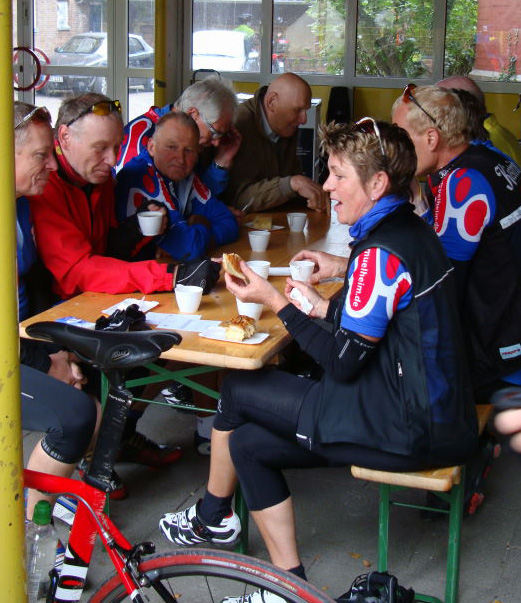 Das Wetter war jedenfalls nicht zu warm. Mangels kräftiger Sonnenstrahlen blies uns ein kalter Wind von vorne auf die Nasen, was uns aber nicht sonderlich störte. Nach ca. 60 km waren wir dann knapp rechtzeitig vor Ort um unsere Punkte sowie Kaffee und Kuchen abzuholen.