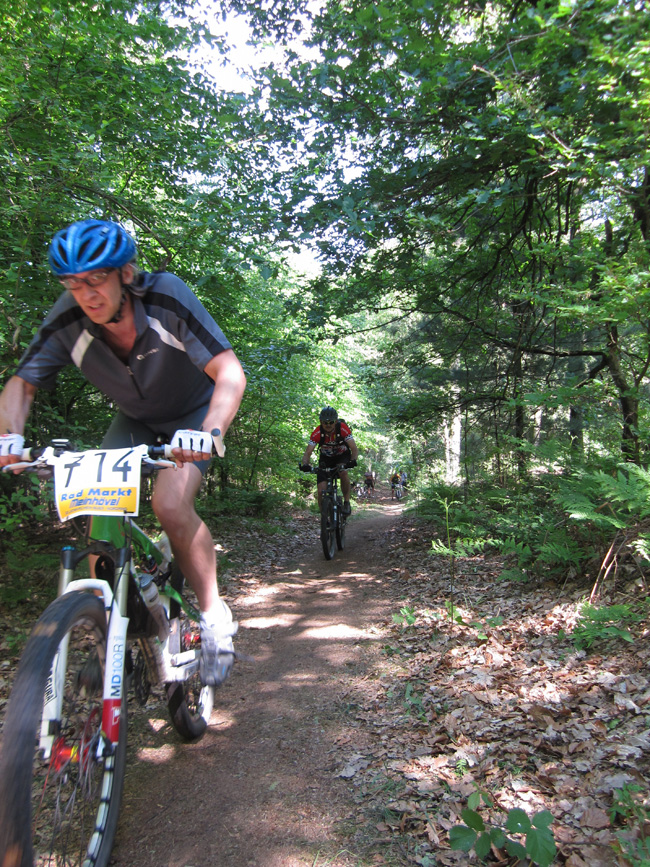 Thomas hatte sich für die Strasse entschieden und sonnte sich auf der Sternfahrerstrecke, wir nahmen die CTF unter die Räder und freuten uns über eine tolle Strecke, die mit viel Phantasie und Aufwand ausgeschildert war. Auch die RTC-Vorstandsetage hatte sich für die CTF entschieden und begegnete uns bisweilen. Das ungewöhnlich schöne Wetter hatte hunderte Radler zur Anreise nach Grefrath veranlasst und der Ansturm am Start führte die Veranstalter an ihre Grenzen. Selbst für die Räder gab es Parkprobleme. Aber nach Erhalt der Startunterlagen entspannte es sich auf der Strecke schnell und wir konnten Natur und Niederrheintrails geniessen. Beeindruckend, die vielen Hügelchen, die in der flachen Landschaft im Weg standen und überwunden werden mussten. 630 Hm kamen auf der 57 km Strecke zusammen und trotz des moderaten Tempos war Arbeit angesagt.