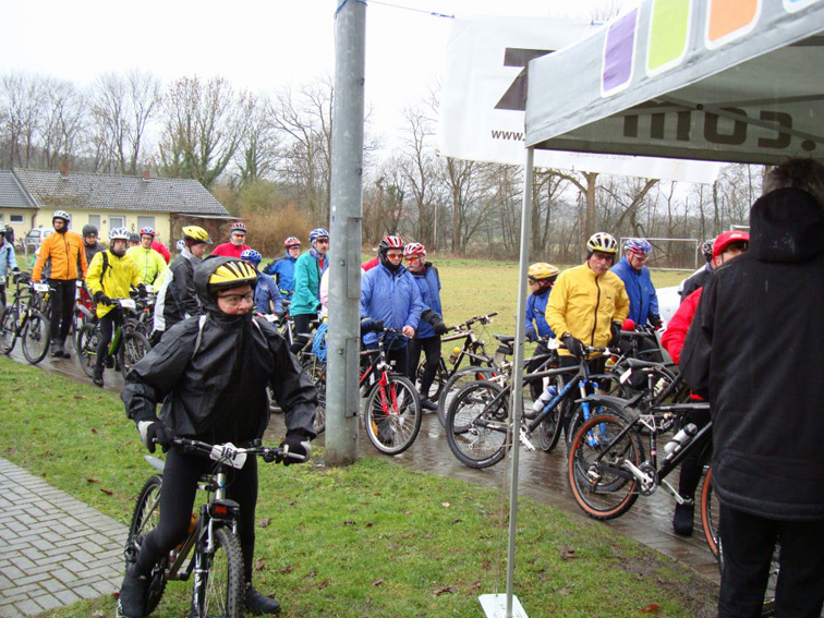 Die Veranstaltung in Dortmund war gut besucht. Durch Nebel und hohe Luftfeuchtigkeit, dicht an der Regengrenze, ging es durch den Dortmunder Nordosten. Leider hat die Runde nach wie vor einen hohen Anteil Asphalt, aber samt Halde gibt es auch schöne Teilstrecken, die die Runde aufwerten. In Anbetracht des Wetters war es natürlich auch reichlich schlammig. Heisse Suppe oder Tee kamen an der zentralen Kontrolle gut. Am Gottesacker war es nach knapp 50 Kilometern überfüllt und reizte nicht zum Verbleib. Mülheims Moutainbiker waren vertreten, aber in guter Tradition war sich nach wie vor jeder selbst der Nächste.