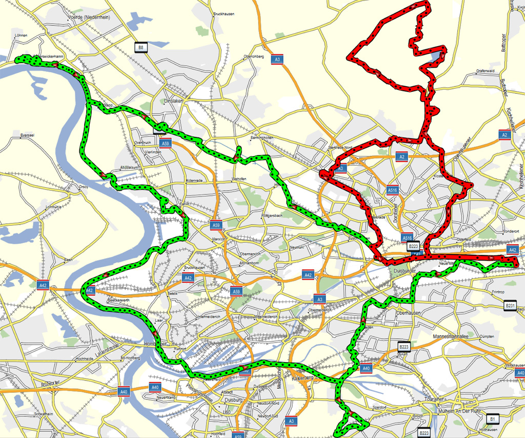 Das Wetter war sonnig und kühl. Wir fuhren so wie immer Richtung Gelsenkirchen. Irgendwann wusste unser Guide nicht mehr so genau weiter, er war die Strecke schon lange nicht mehr gefahren, also übernahm ich.