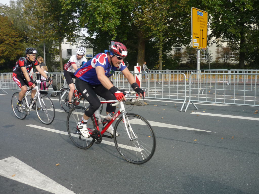 Die Eiligen scharrten schon nach der ersten Tasse Kaffee mit den Hufen und wir setzten uns erst nach der 2. Koffein-Runde wieder aufs Rad - Andreas und Roland hatten damit Glück im Unglück, denn eine Reifenpanne warf sie deutlich hinter die erste Gruppe zurück und so wurden sie von der Nachhut wieder eingesammelt. Ein kleiner Abstecher zum Mülheimer Fahrradfrühling rundete den Vormittag ab.