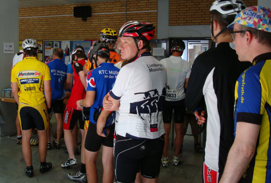 6 waren es an der Zahl, wir trafen uns in Büttgen um von dort aus nach Erkelenz zu fahren. Die Fahrt zum Start verlief ohne Zwischenfälle, der Wind blies kräftig und stetig von vorne. Regen, mussten wir uns nur, um weiter zu kommen. Von Oben blieb es trocken. Vor Ort gab es Kuchen und Kaffee für hungrige Radfahrer, in Portionsgrößen die auch sättigen, einfach toll.