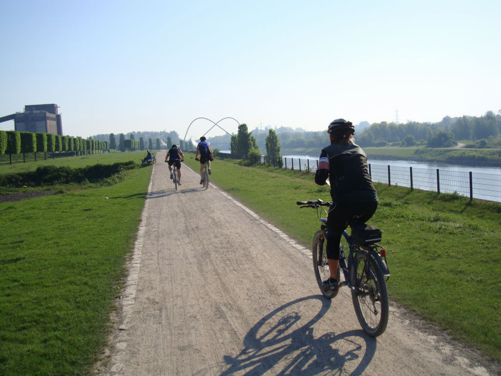 6, unterwegs sammelten wir noch ein paar Vor-und Nachzügler ein und rückwärts blieben dann 5, ein paar eilige voraus und uns gelang es ein Tempo anzuschlagen, dem auch Lothar gut folgen konnte -das Abschlussbier an der Duisburger Rheinbrücke war kultureller Schlusspunkt.
