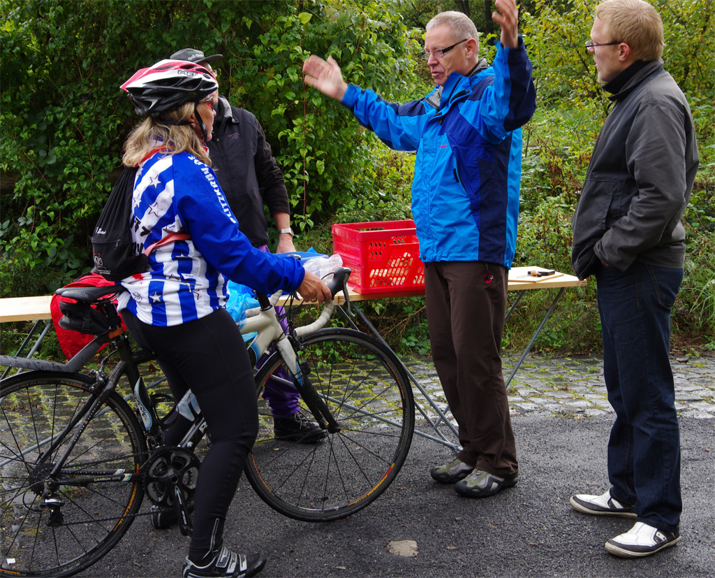 Nur Mani leistete sich den Luxus nach Hamm anzureisen und die landschaftlichen Reize zwischen Möhnesee und Hamm-Uentrop zu genießen. Ohne Autostress kam die CTF-Permanente von Oberhausen in Frage und das fiel nicht nur mir ein. Bei der Anmeldung am Kiosk Anker standen Otti und Harry bereits seit ein paar Stunden auf der Anmeldeliste. Leider reproduzierte der Garmin die gespeicherte Strecke nicht sehr erfolgreich und ich war auf die Papierdokumentation angewiesen.