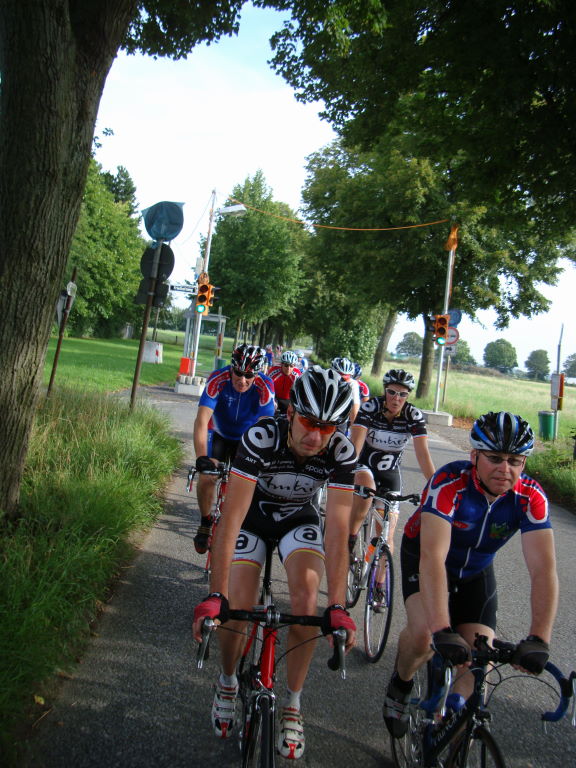 Auf der Heimreise waren wir nur noch zu siebt. Die anderen arbeiteten intensiv an der Erhöhung des Schnitts und wir rollten mit leichtem Rückenwind genüsslich Richtung Raffelberg. Trotzdem erwischte es dann doch noch unseren Gast: Sonst zu Fuss auf Marathons unterwegs, hatte er wohl zu wenig getrunken und wurde von Krämpfen geschüttelt. Eine kleine Pause des Leidens, Lockerns und Lösens, dann war er wieder betriebsbereit und es ging vorsichtig weiter. Zu Hause wurde der Flüssigkeitshaushalt bestens ausgeglichen.