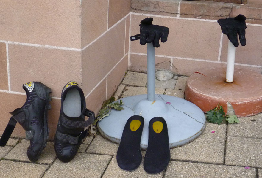 Ein kleines Frühstückchen, die Trinkflaschen gefüllt. Dann die Morgentoilette, in das hautenge Lycra gezwängt und schlagartig wird mir klar, daß das mit der Diät im Winter nicht so hingehauen hat. Man kommt sich auf einmal vor wie eine Presswurst, aber egal, wenn man Rad fahren will, müssen die Anderen halt leiden. Es geht nichts über ein gewisses Maß an Ignoranz, sonst hätte man ja gar keinen Spaß mehr am Leben.