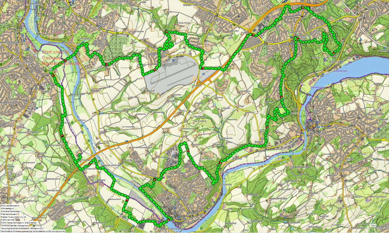 Die Runde im Bild: Schöne Wege in Mülheim's Süden und der Track: