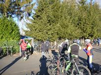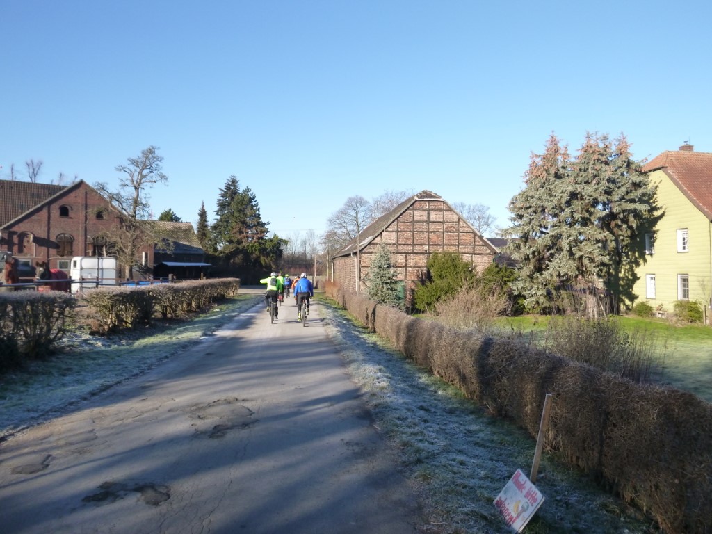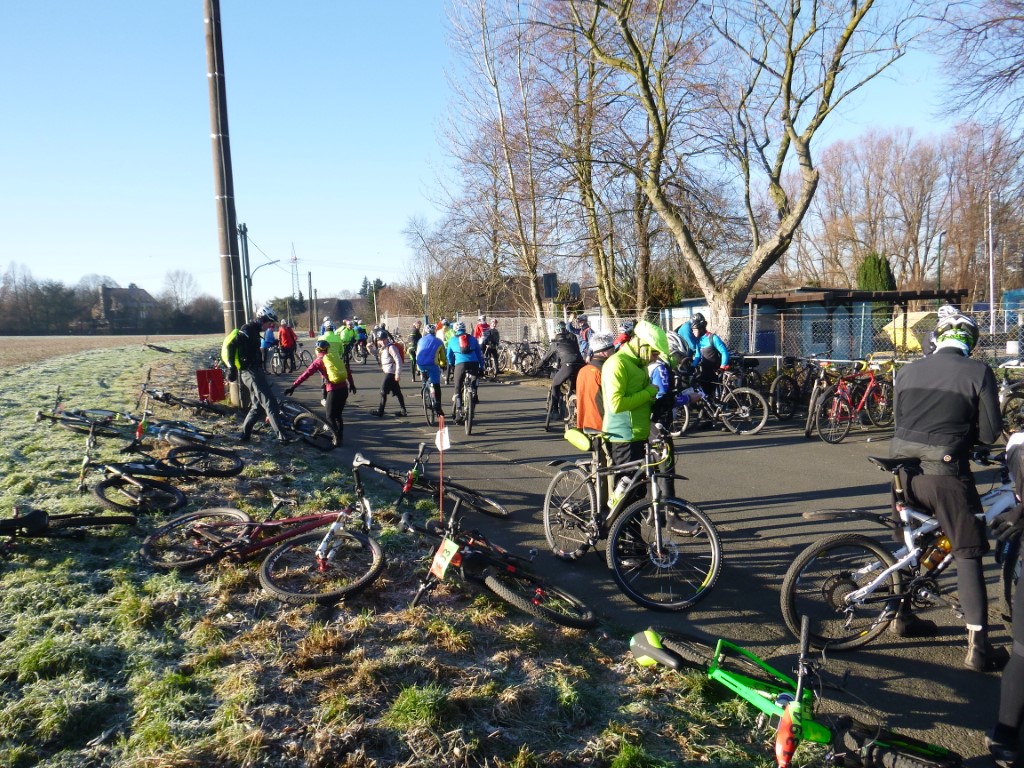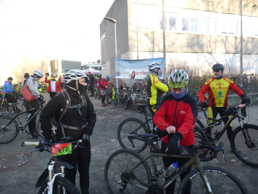 Nach der Anmeldung sammelten sich die RSC-ler am Startbogen und ließen sich die Kontrollkarte stempeln. Insgesamt 808 Teilnehmer taten es ihnen gleich. 7 RSC-Kollegen waren am Start und die große (53km) oder auch die ganz große (75km) Runde sollte angegangen werden. Zu Beginn gab es Probleme mit vereister Schaltung und einigen Fotostopps, da blieb die Gruppe nicht gut zusammen. Aber kein Problem, denn an der ersten Kontrolle waren alle wieder beisammen. Die Gruppe, die die ganz große Runde fahren wollte, ließ Thomas ziehen. Die Form war noch nicht so gut. Er fuhr gemütlich los, der Körper verlangte Bewegung, schon der Kälte wegen. Er ließ es locker angehen und machte noch ein paar Fotopausen. Die Strecke bot Asphalt, viele Wald- und Feldwege sogar ein paar Trails. Diesmal gab es auch ein paar Höhenmeter, 392 Hm genau. Im Ziel trafen sich dann alle wieder und auch noch andere des RSC. Nach dem kleinen Imbiss vor der Abreise ging es dann ab, Richtung Heimat. |